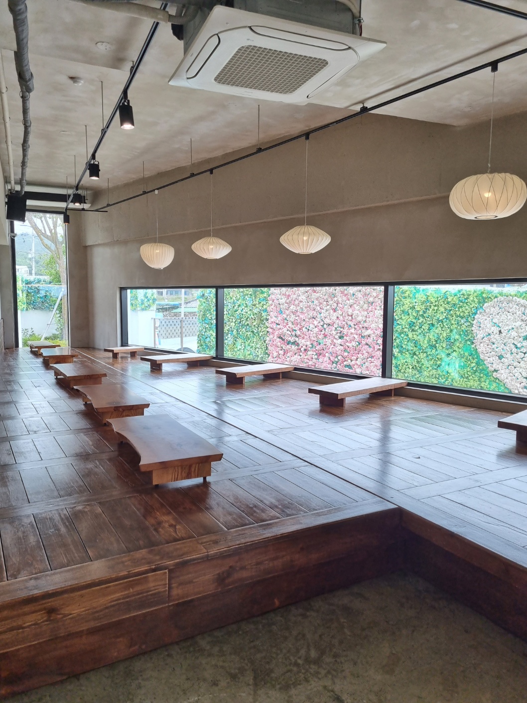 1층은 이렇게 좌식으로 앉을 수 있는 테이블도 있고 쇼파좌석도 있습니다