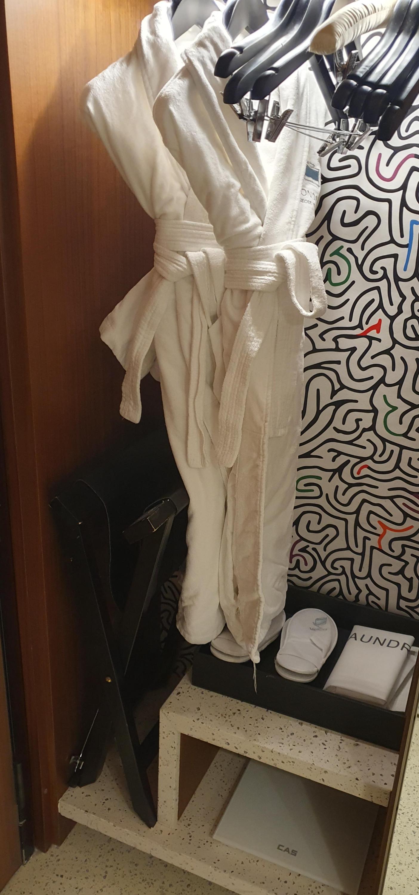 문 바로 옆에는 가운이랑 슬리퍼 다리미 등이 있고요
