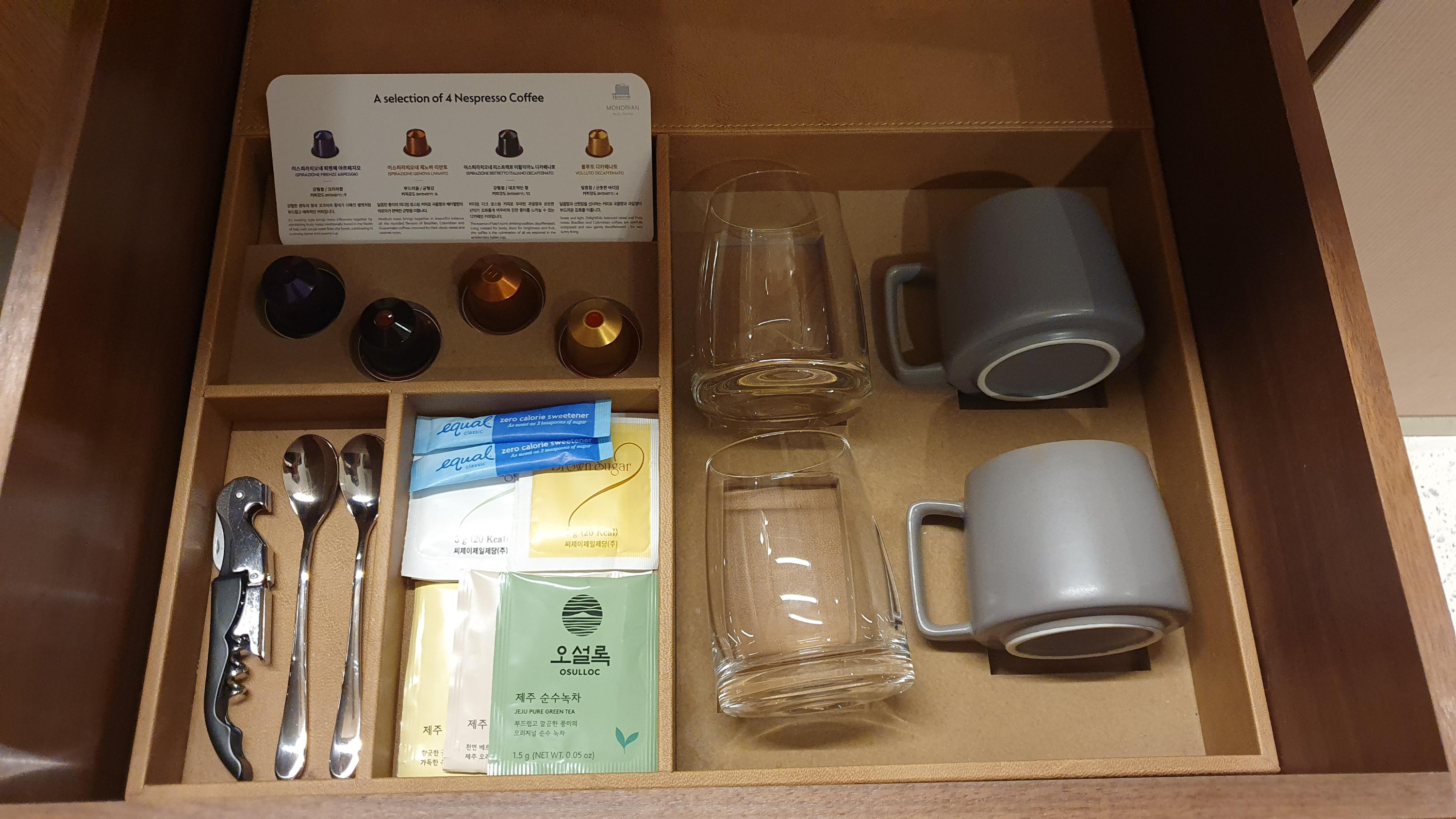 와인잔, 커피포트, 네스프레소, 캡슐도 준비되어있었고