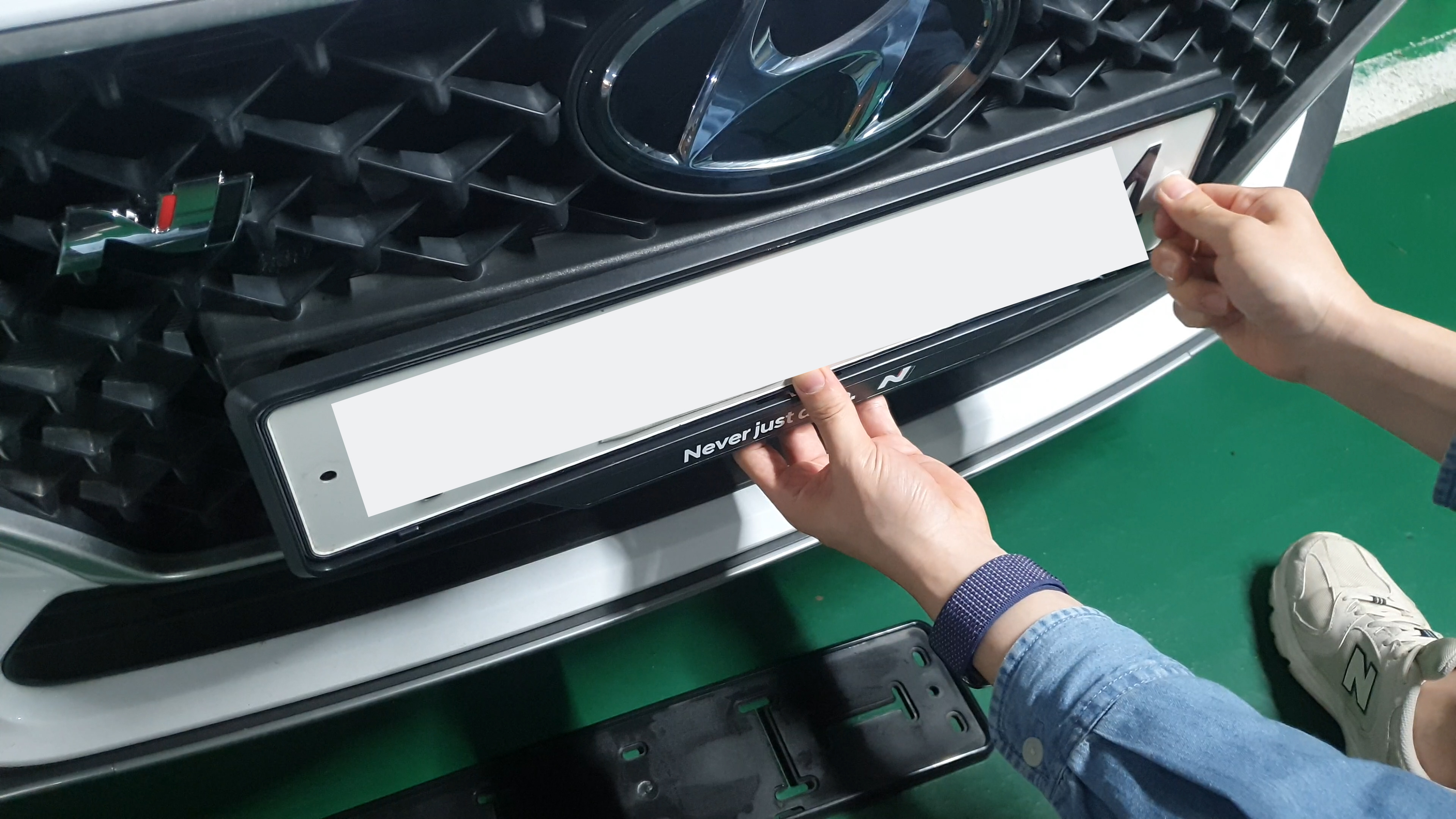 새로운 번호판플레이트에 번호판을 끼워넣고 다시 장착해줍니다