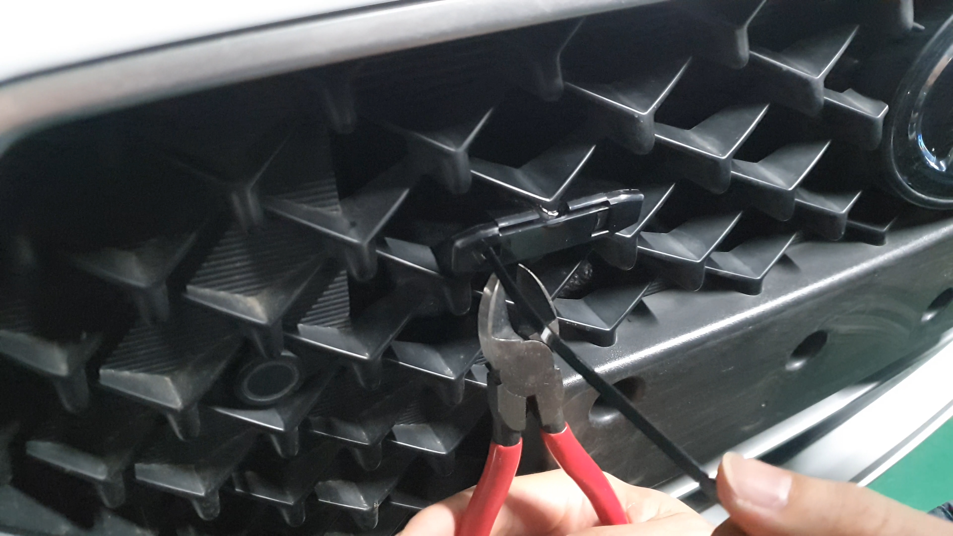 브라켓에 구멍에 케이블타이를 넣어서 그릴과 브라켓을 단단하게 고정시켜줍니다