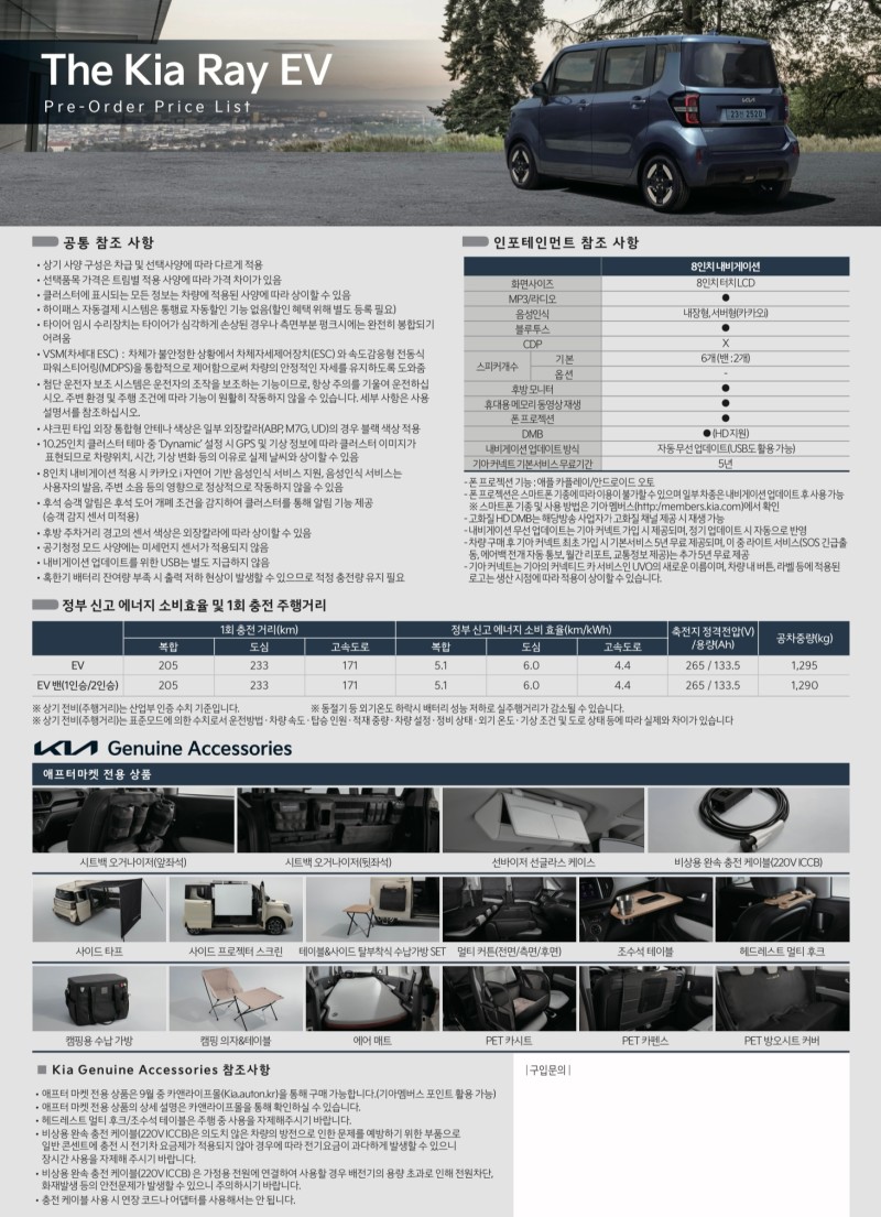- 더 뉴 레이 EV 가격표 옵션표 -