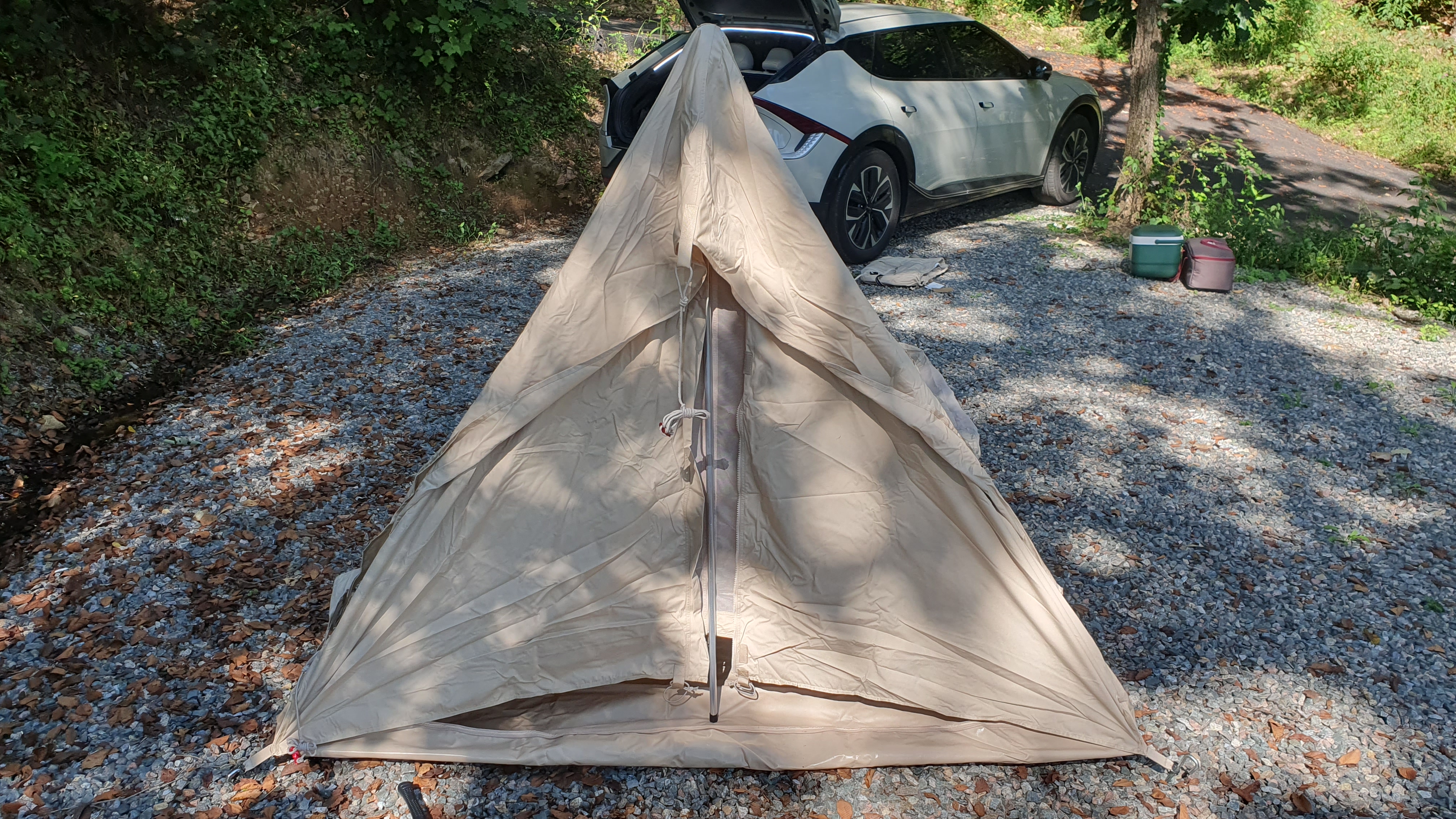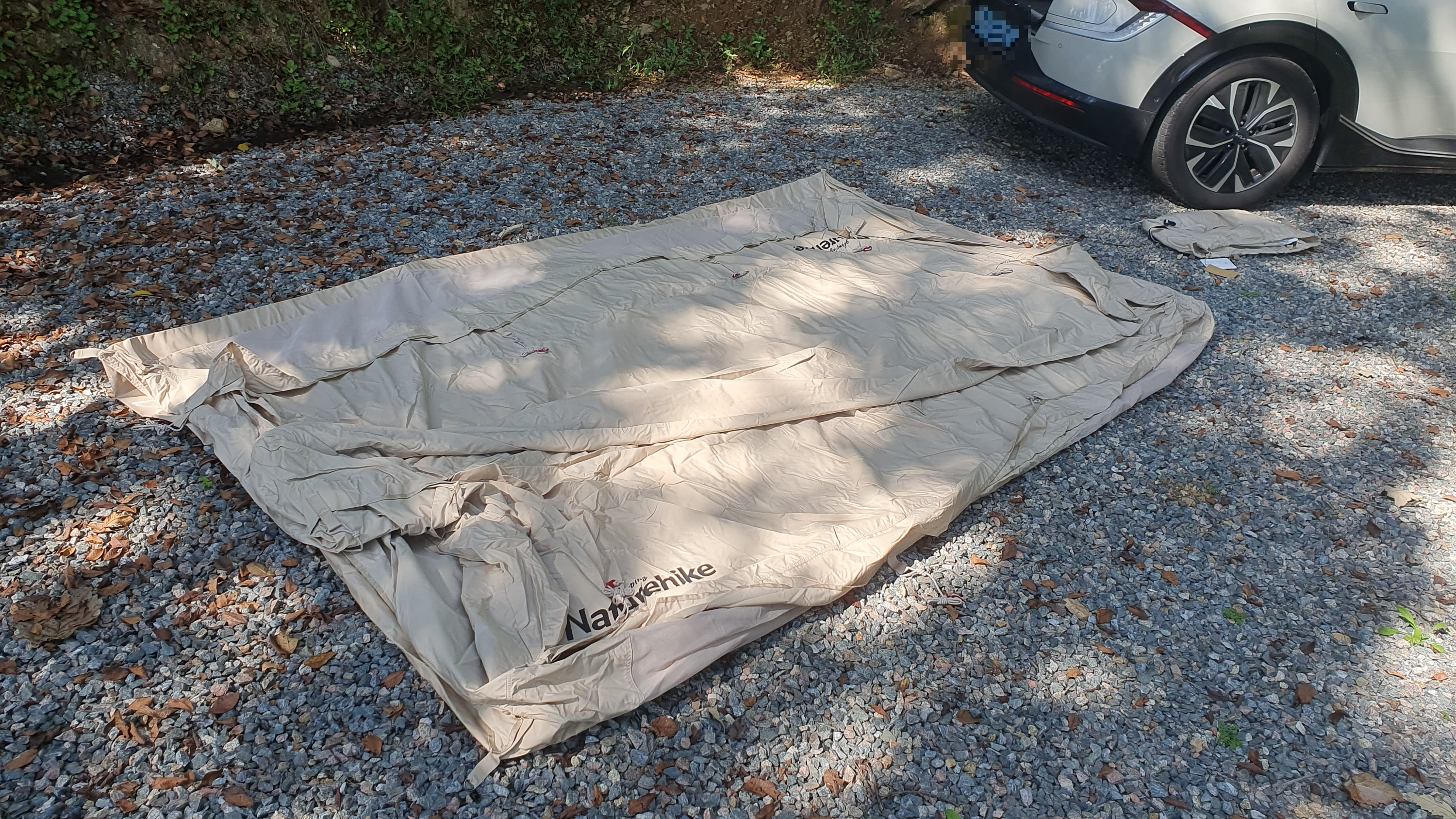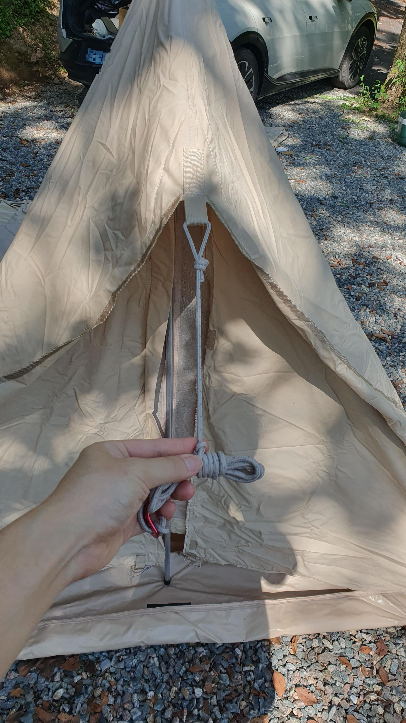 텐트를 위치할 곳에 맞춰서 쭉 펴줍니다