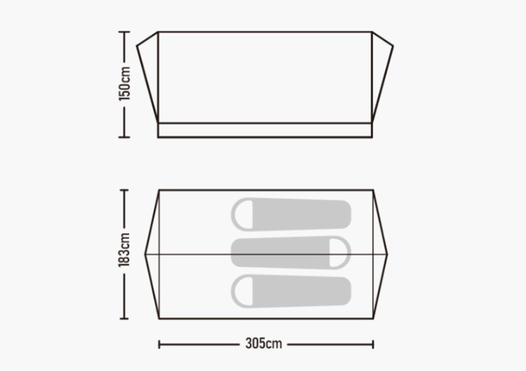 사이즈는 305 x 183 x 150cm 입니다