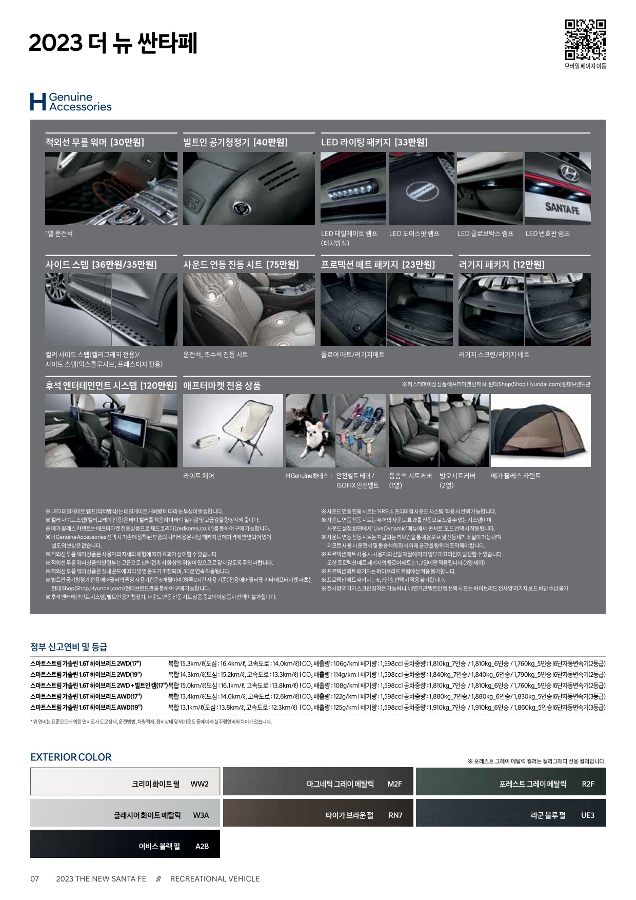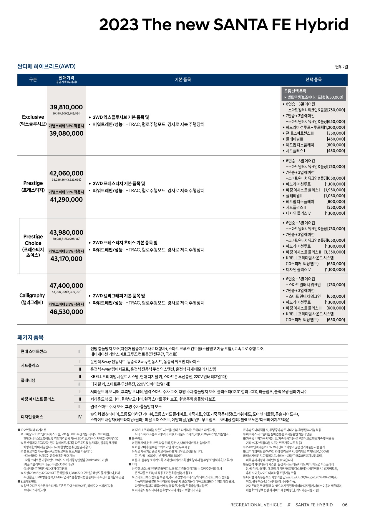 - 2023 더 뉴 싼타페 가격표 옵션표 -