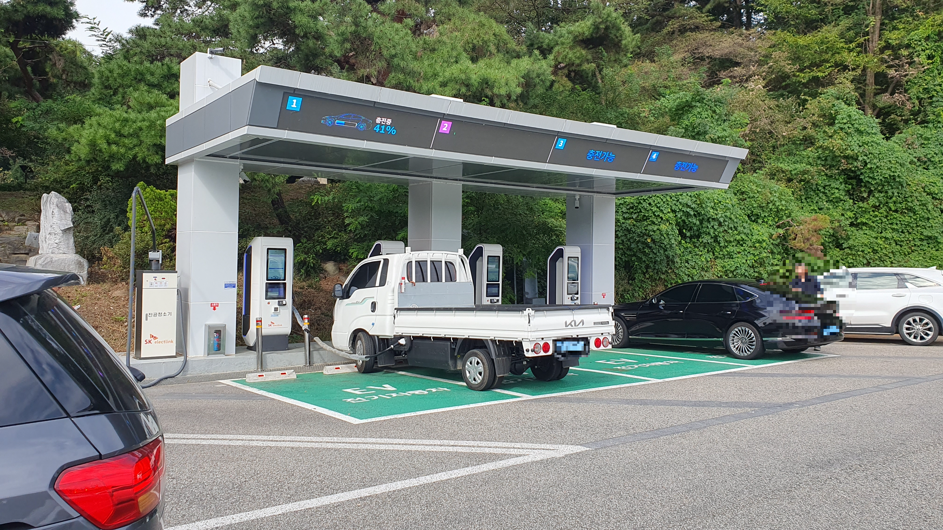 휴게소를 기준으로 오른쪽 편에는 SK일렉링크 충전기 4기가 위치하고 있습니다