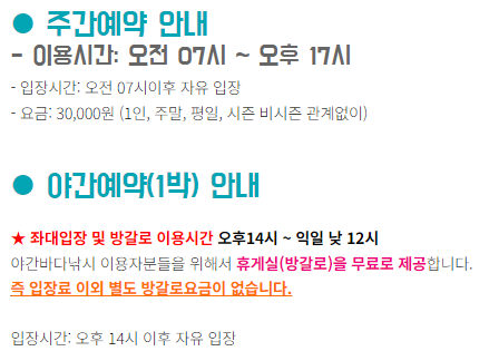 저는 일요일에 4명이서 야간예약으로 1박을했습니다