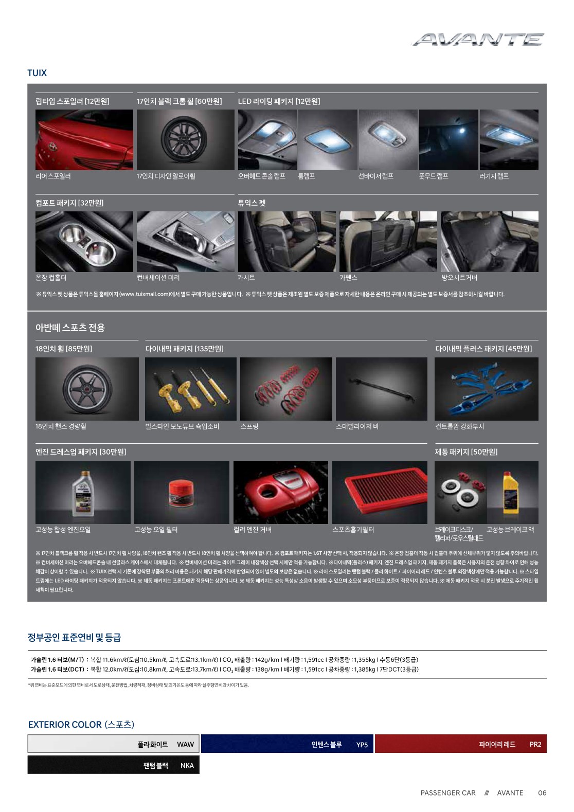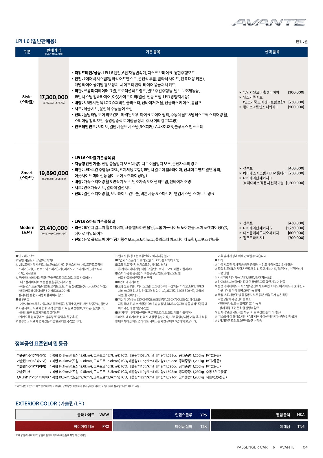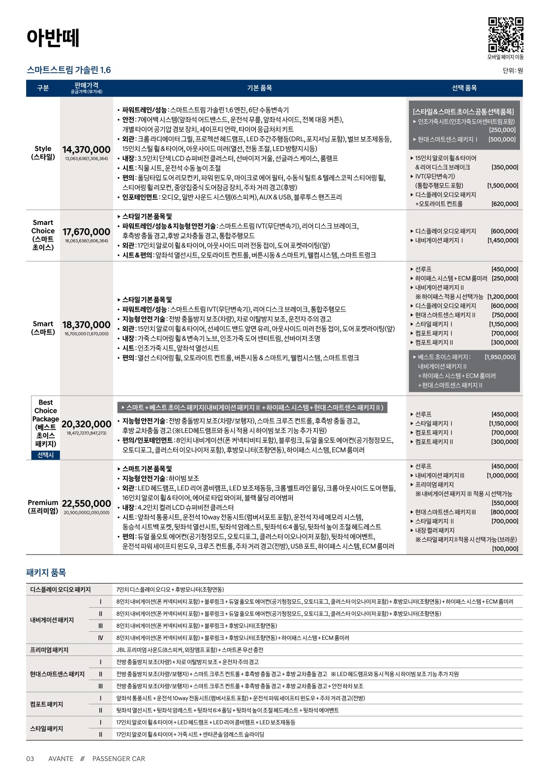 2020 더 뉴 아반떼 가격표 옵션표
