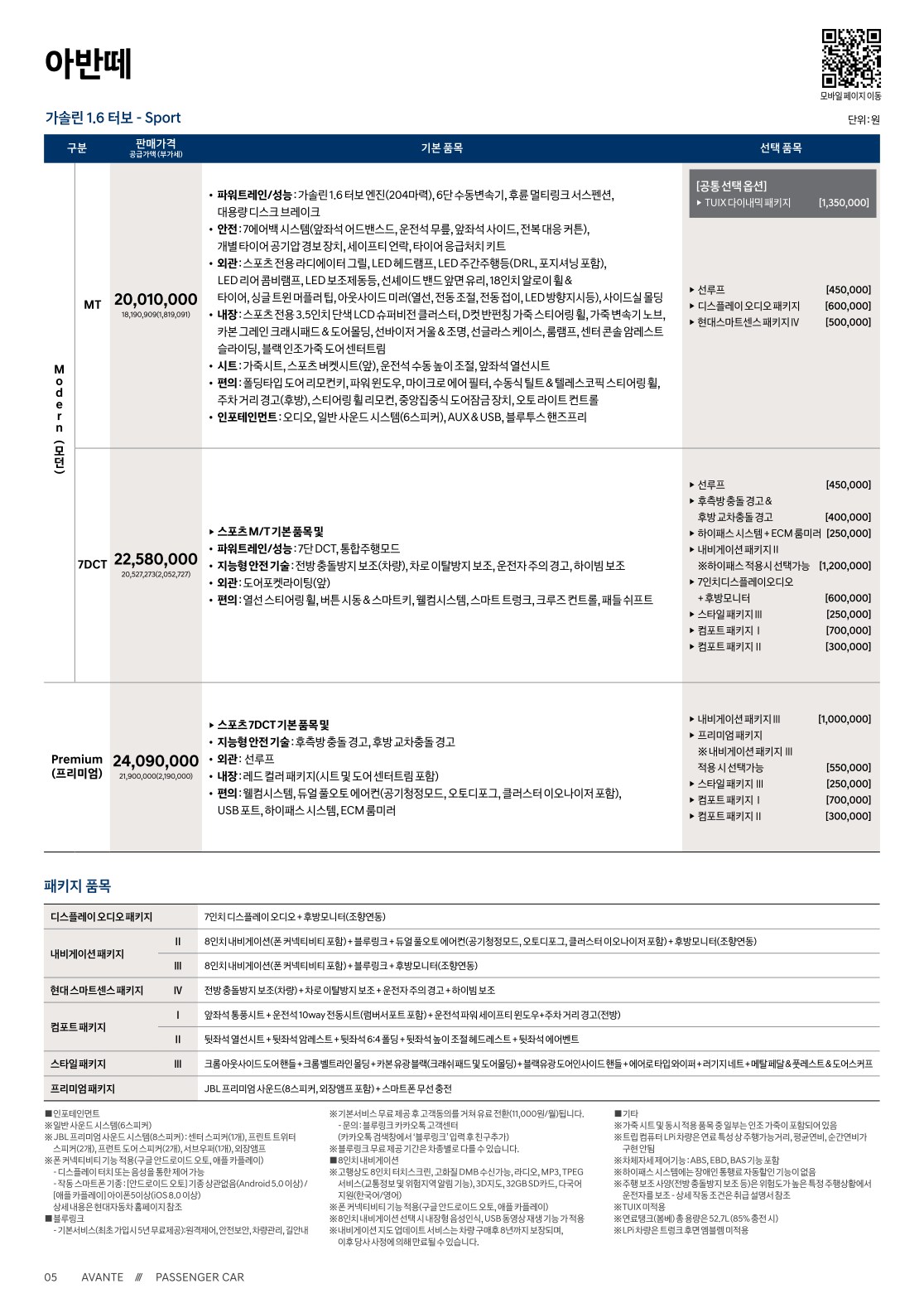 - 2020 더 뉴 아반떼 가격표 옵션표 -