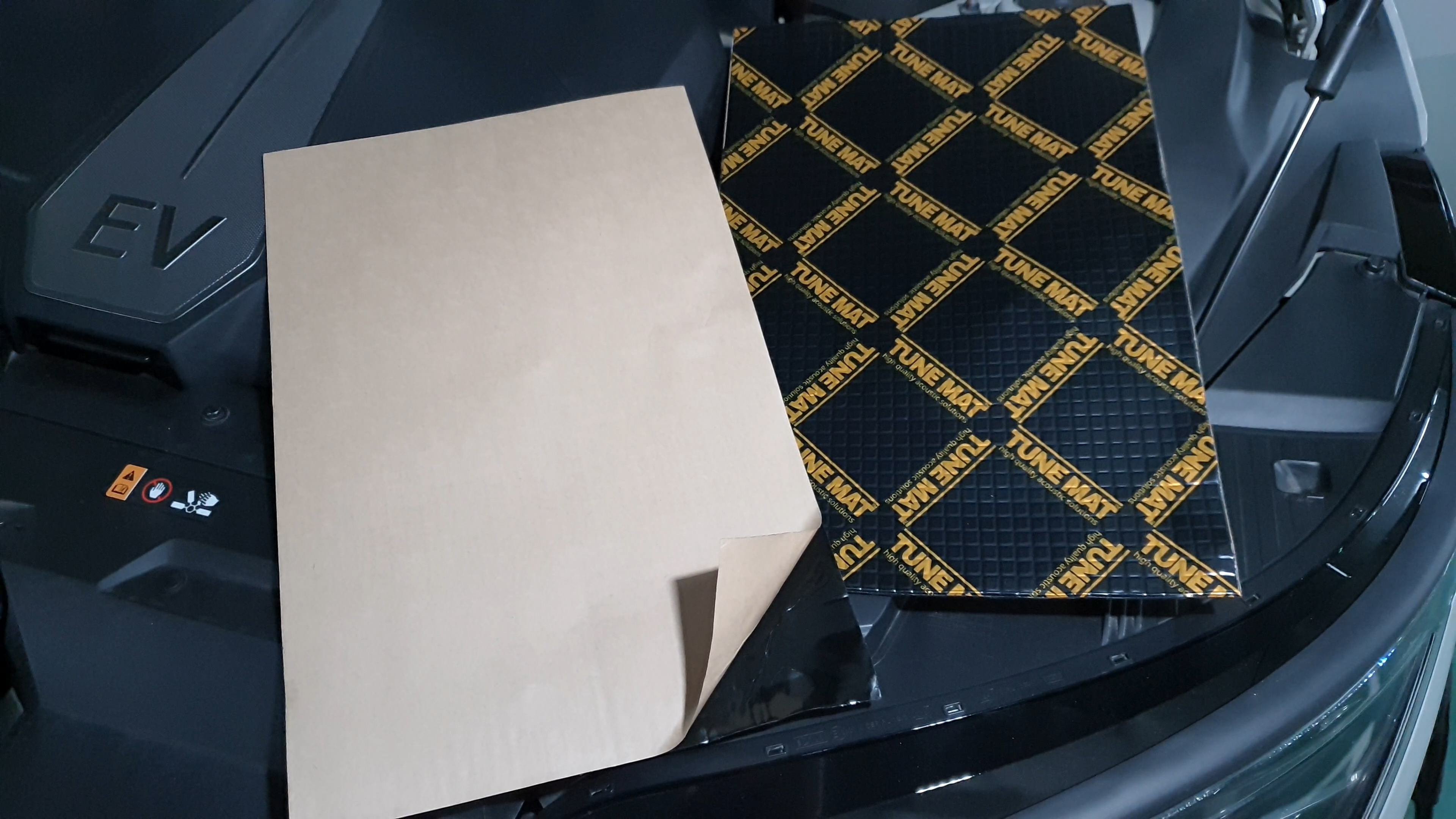 그래서 저의 아이디어는 차량 방음할 때 쓰는 방진매트를 붙여서 고정을 하는 겁니다