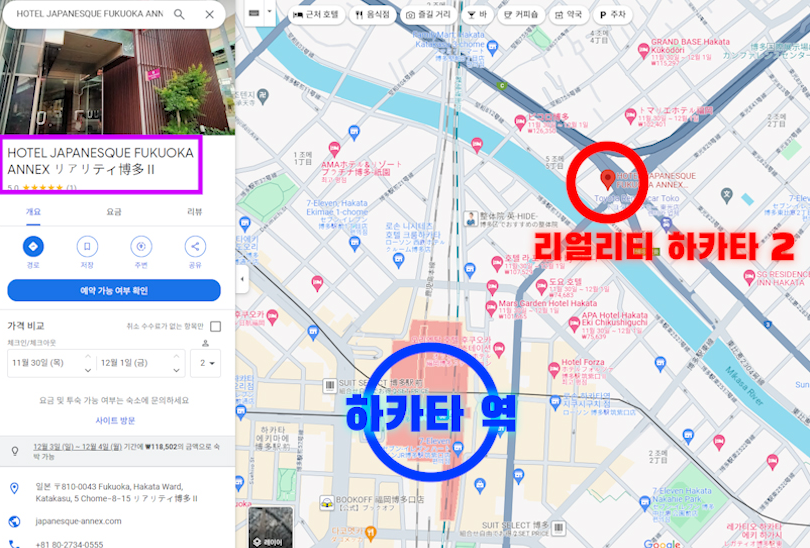 구글 지도 상에는 리얼리티 하카타 2 라고 명칭이나오지 않고