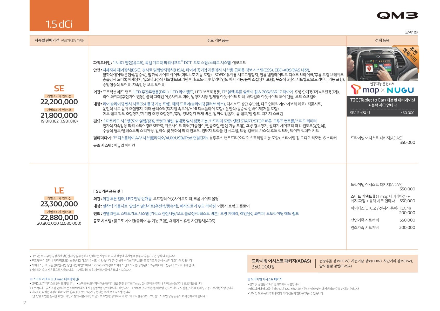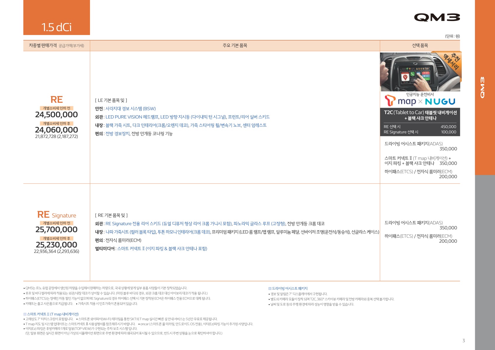 QM3는 1.5리터 디젤, 90마력, 22.4kgm의 출력으로 L당 18.5km라는 좋은 연비를 자랑합니다