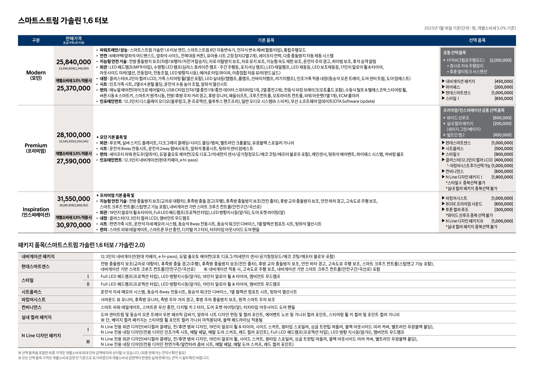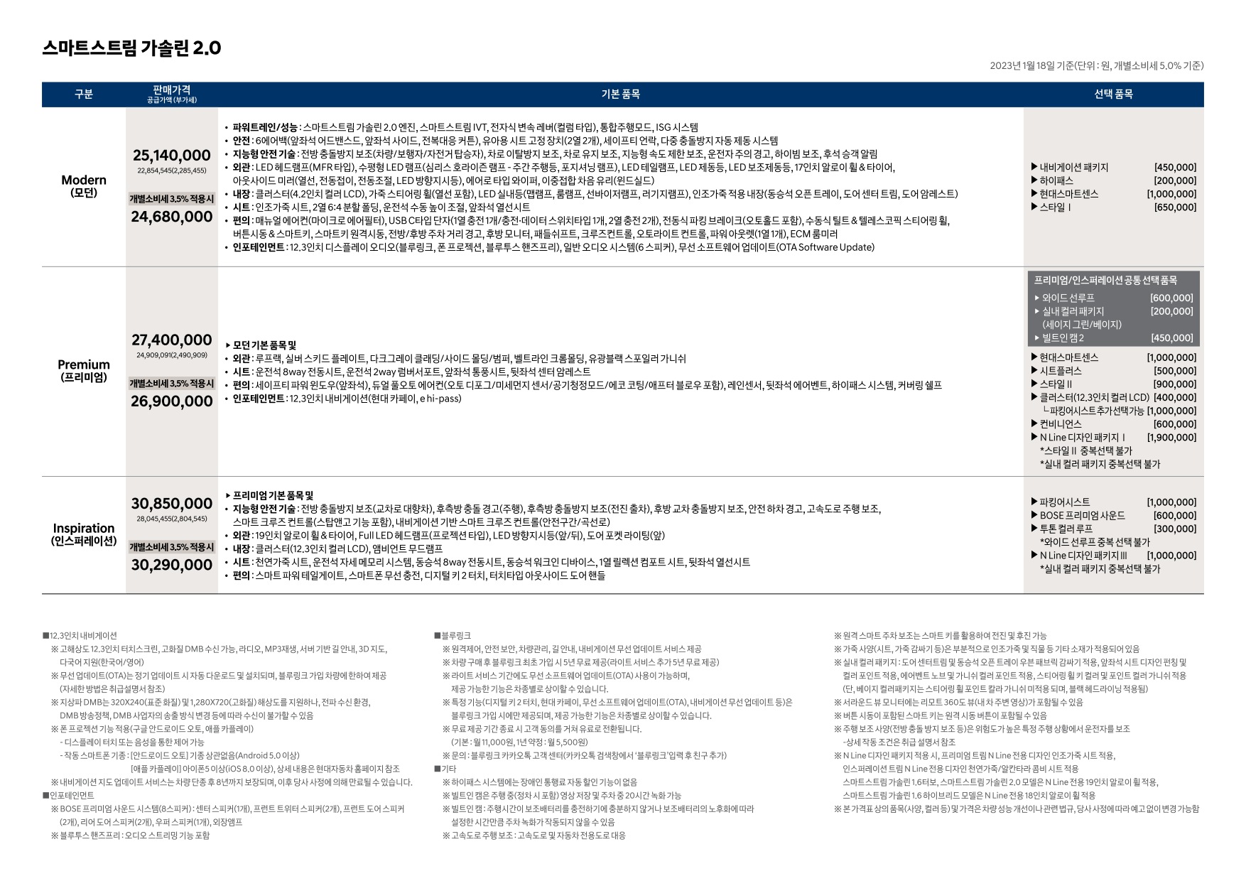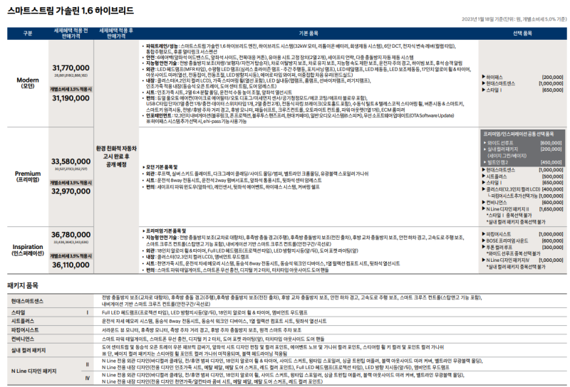 - 2023 디 올 뉴 코나 하이브리드 가격표 옵션표 -