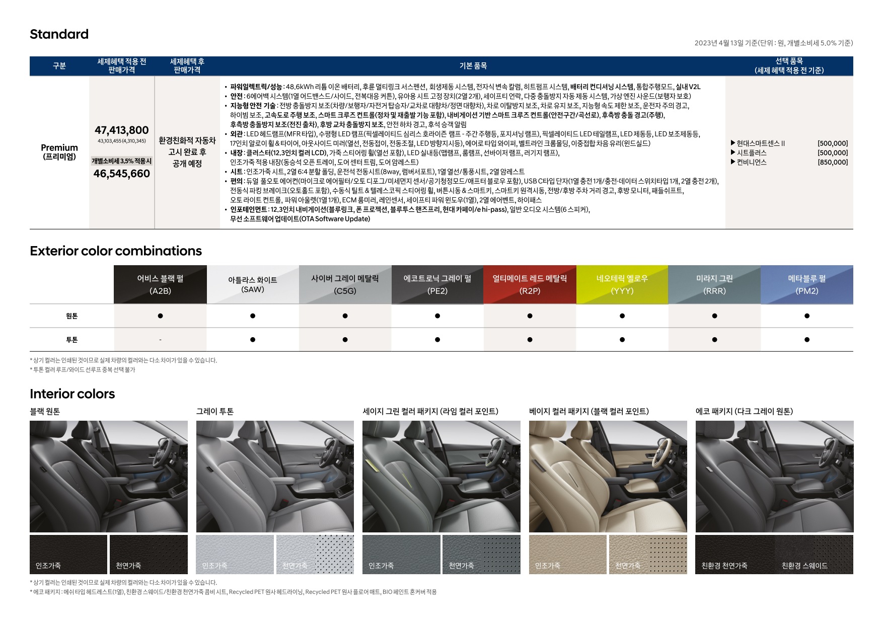 - 2023 디 올 뉴 코나 EV 가격표 옵션표 -