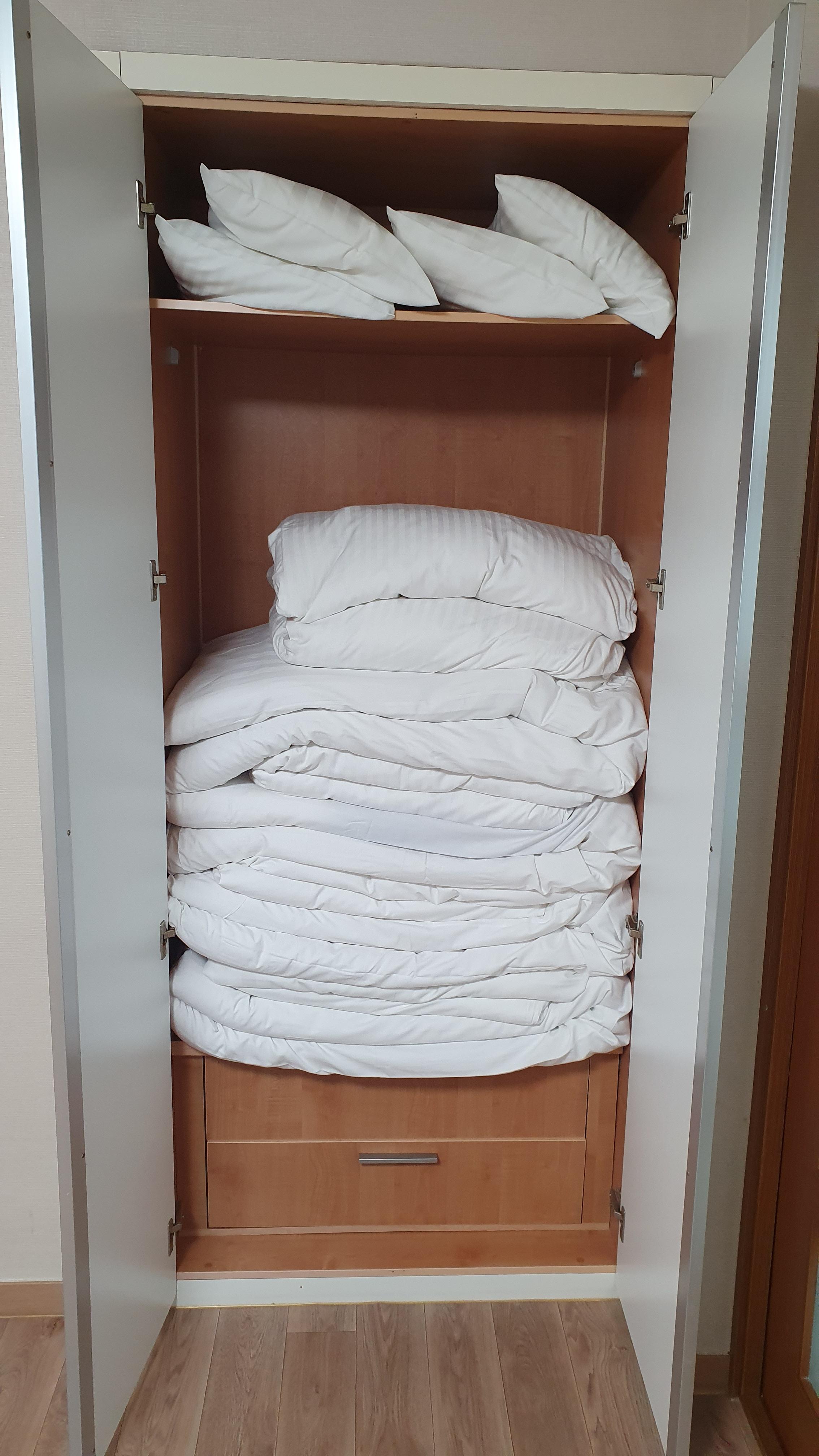 안쪽 방에는 침구류가 비치되어있구요 천장에 시스템 에어컨도 개별적으로 있습니다