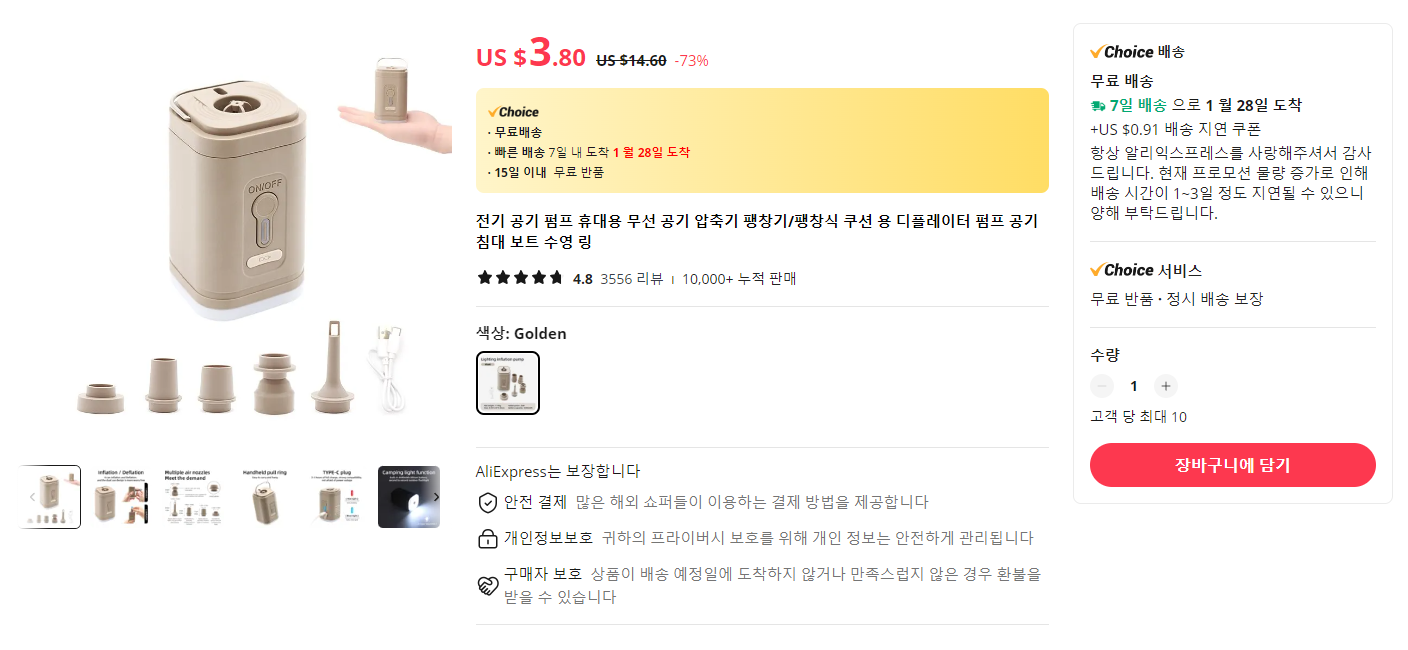 알리익스프레스 가성비 무선 에어펌프 간단후기
