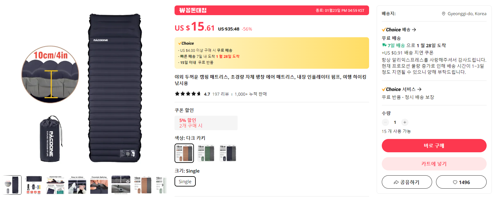 알리익스프레스 가성비 백패킹 에어매트리스 간단후기