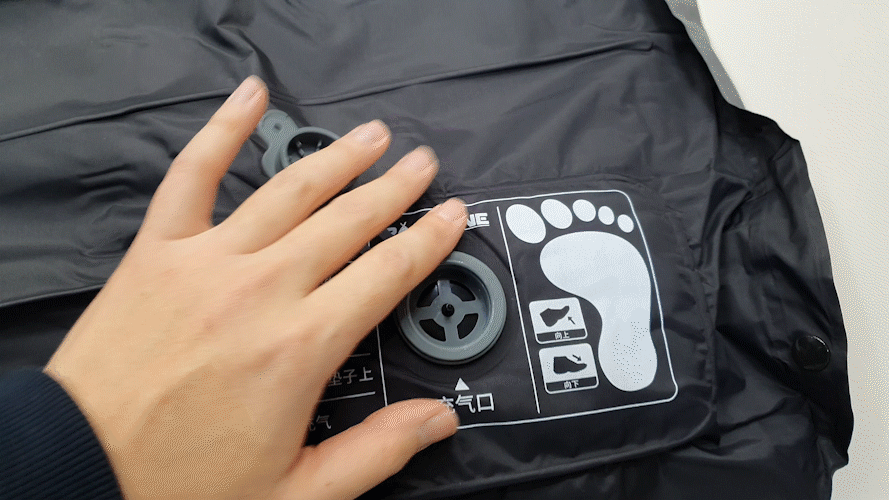 뒷면은 회색으로 되어있고 바람을 빼거나 넣을 때 사용하는 구멍이 있습니다