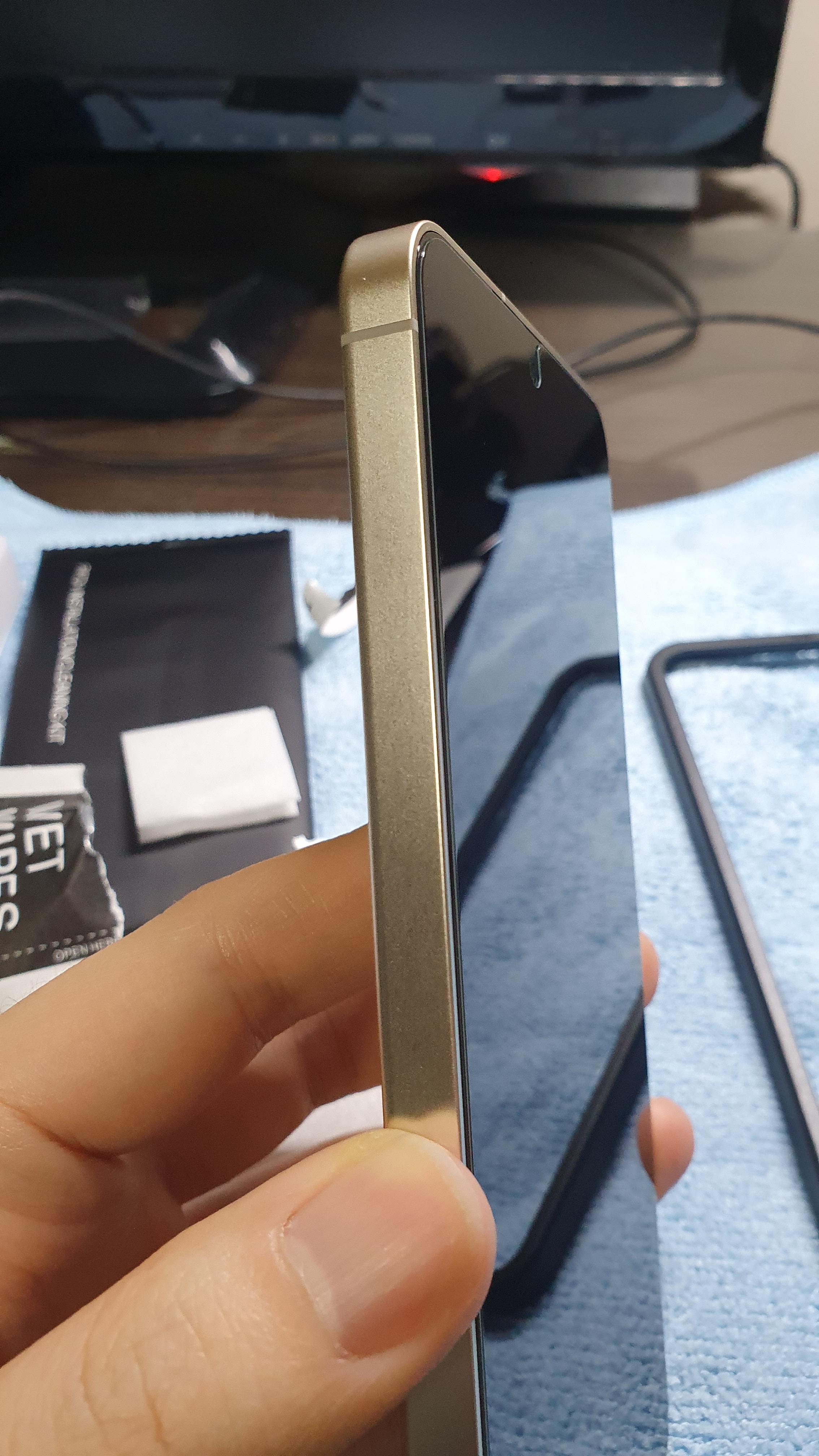 가이드를 폰 위에 올려놓고 강화유리를 그대로 올려주기만 하니까