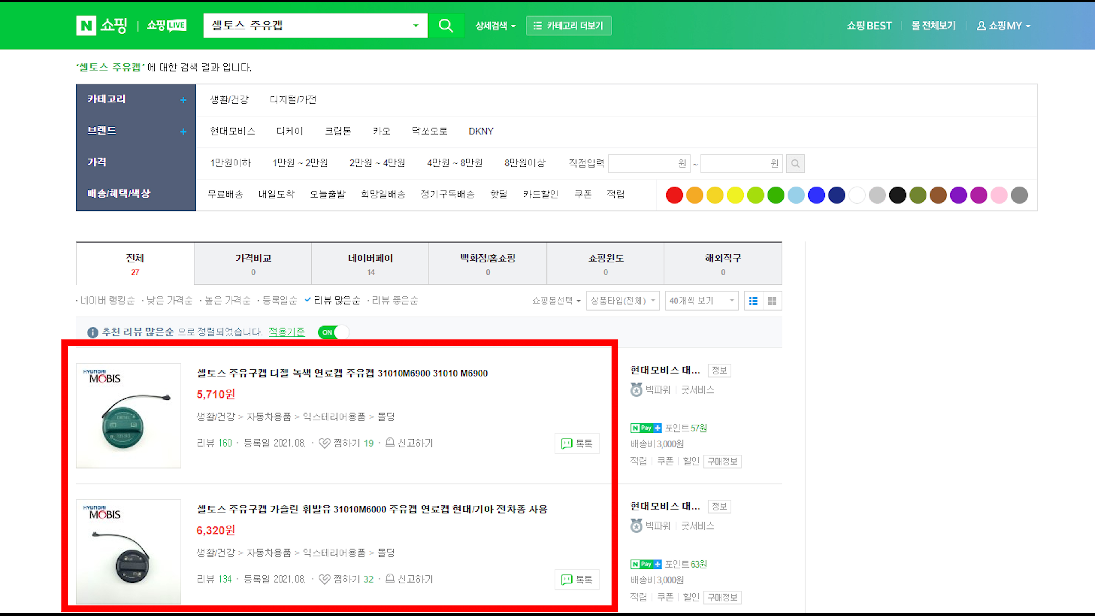 검색창에 셀토스 주유캡이라고 검색하면 나오고