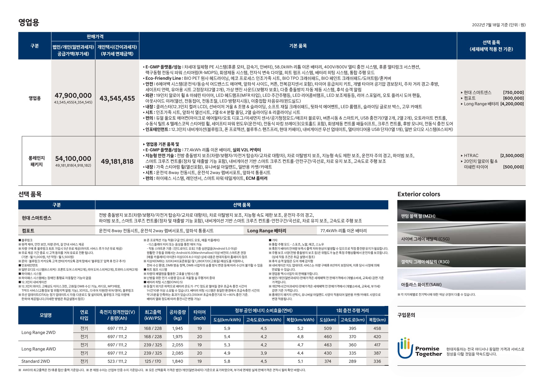[ 2023 아이오닉5 가격표 옵션표 ]