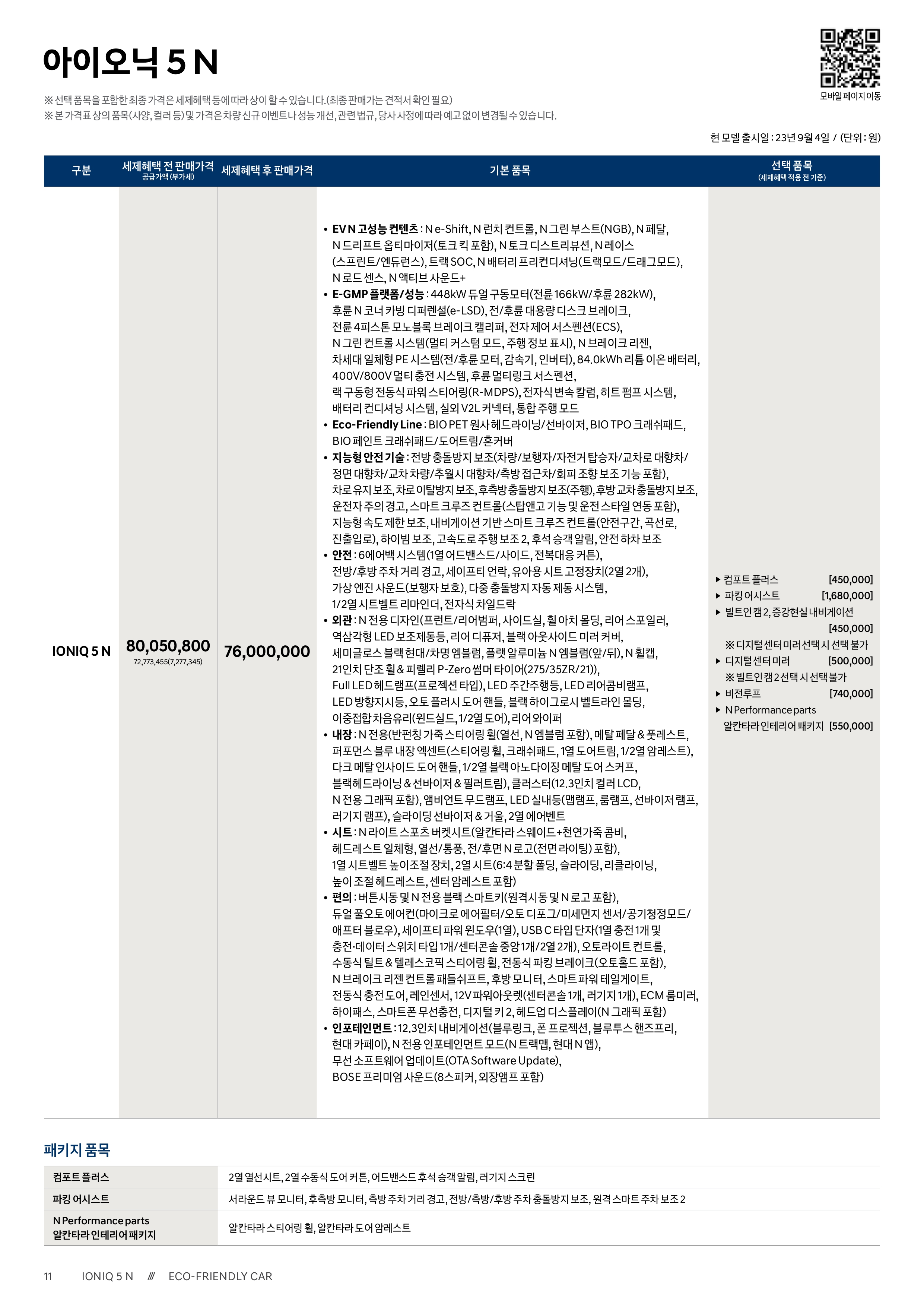 [ 2023 아이오닉5N 가격표 옵션표 ]