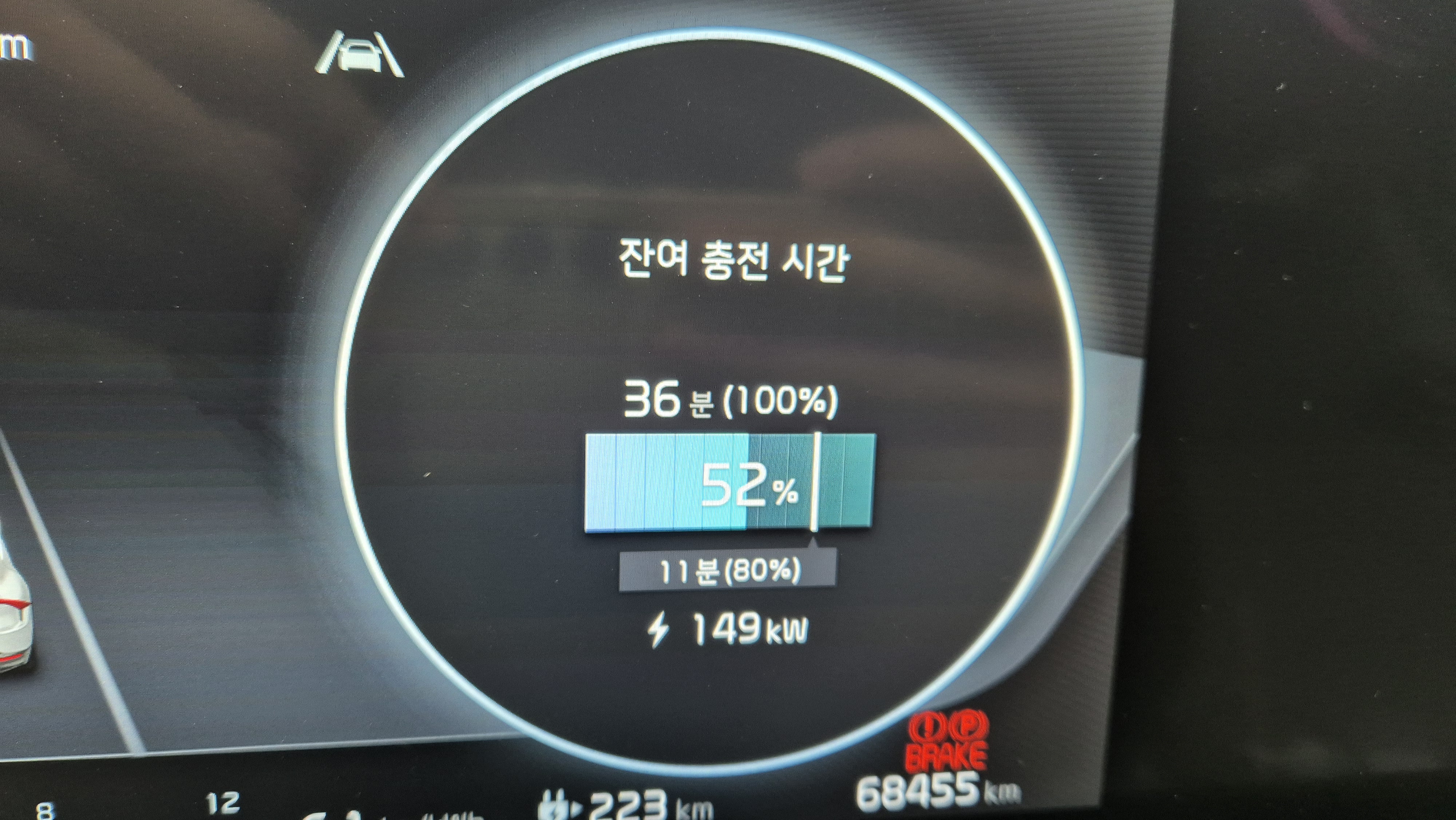 충전을 시작하고 호두과자를 사러 잠깐 갔다왔는데 52%네요 속도는 149kW