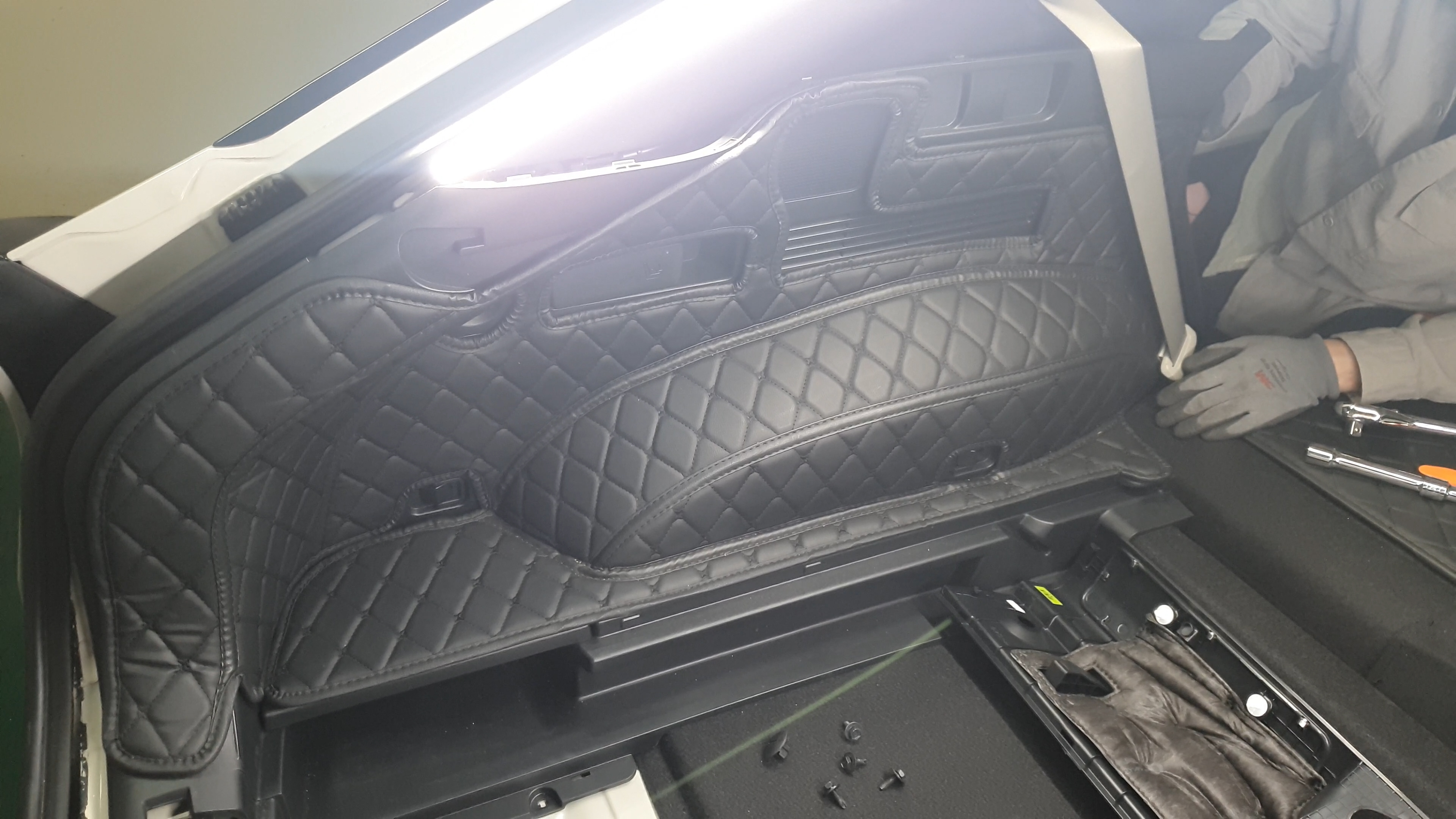 이제 트렁크 사이드 트림을 당겨주면 안쪽에 키들이 빠지면서 탈거가 가능합니다