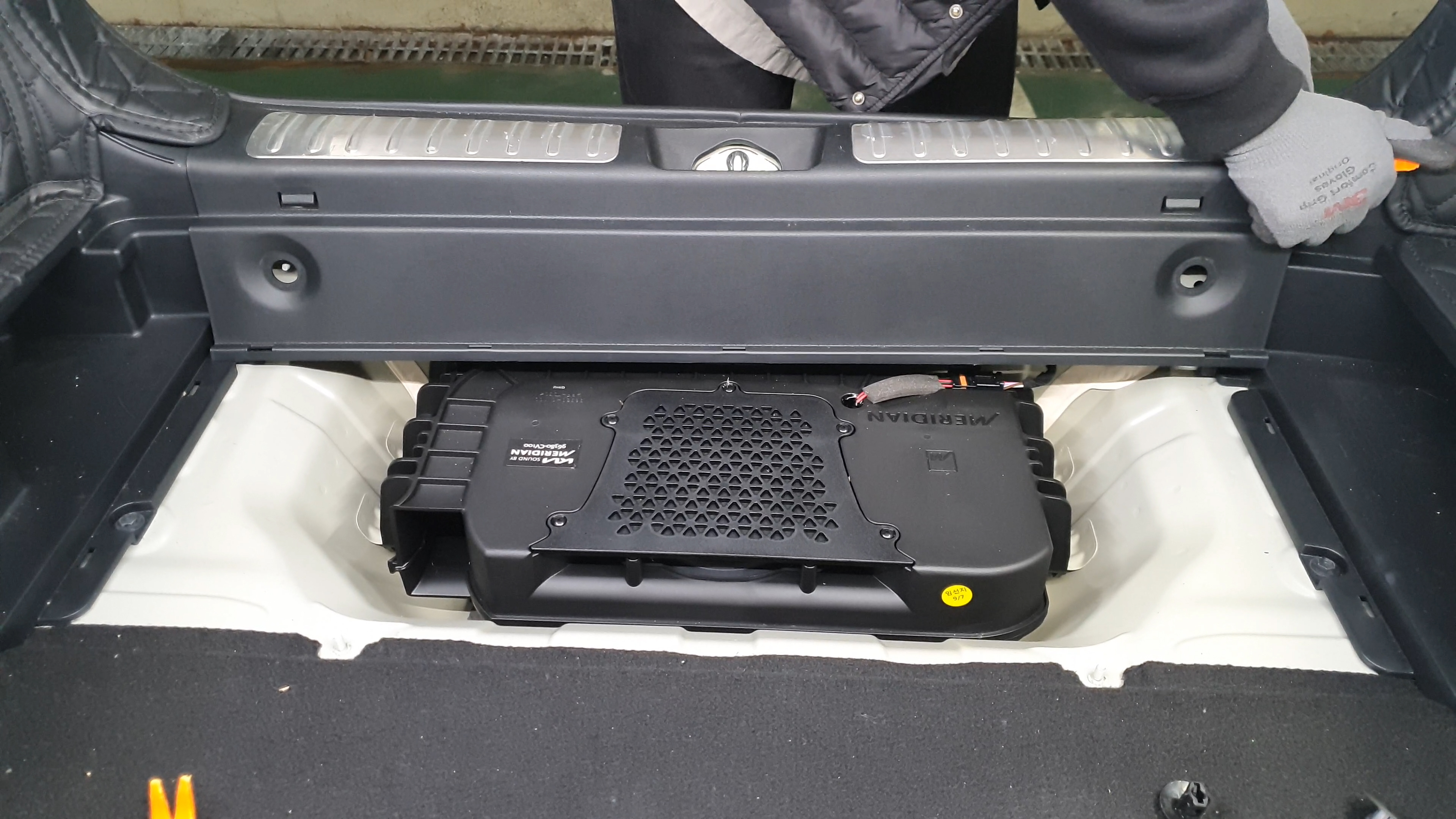 트렁크 바닥판을 빼주고 오디오 엠프가 있는 자리에 커버를