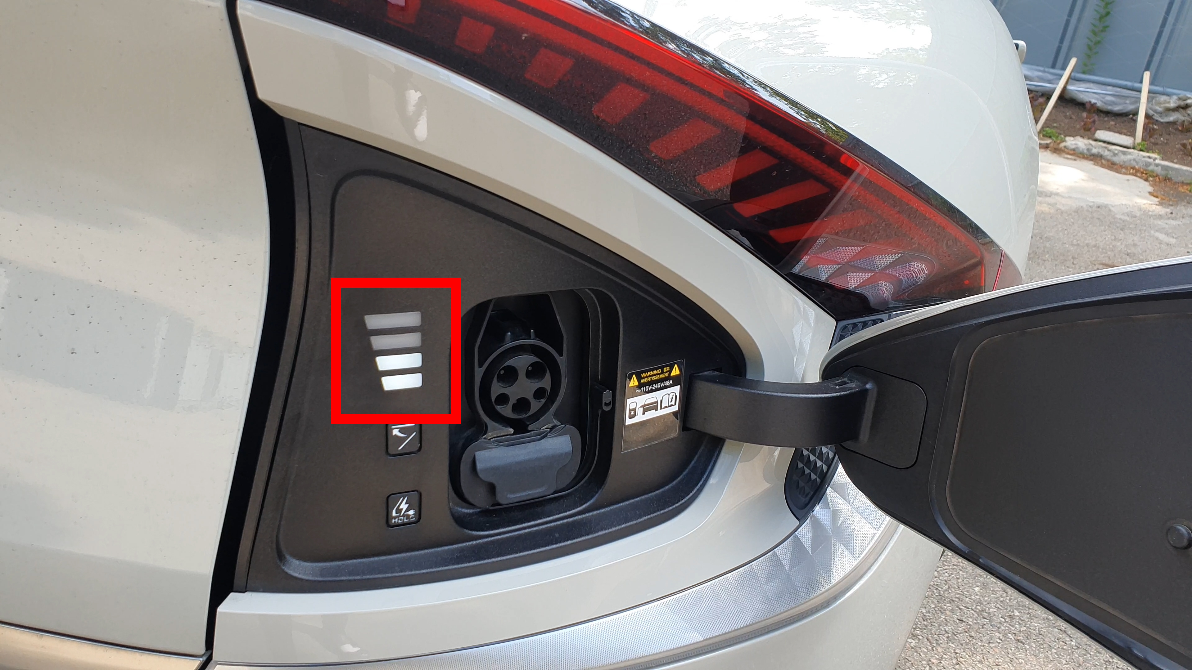 EV6차량의 충전구는 LED 충전표시등이 있는데 충전표시등이 밝은편이라 어두운 곳에서 충전을 하려면