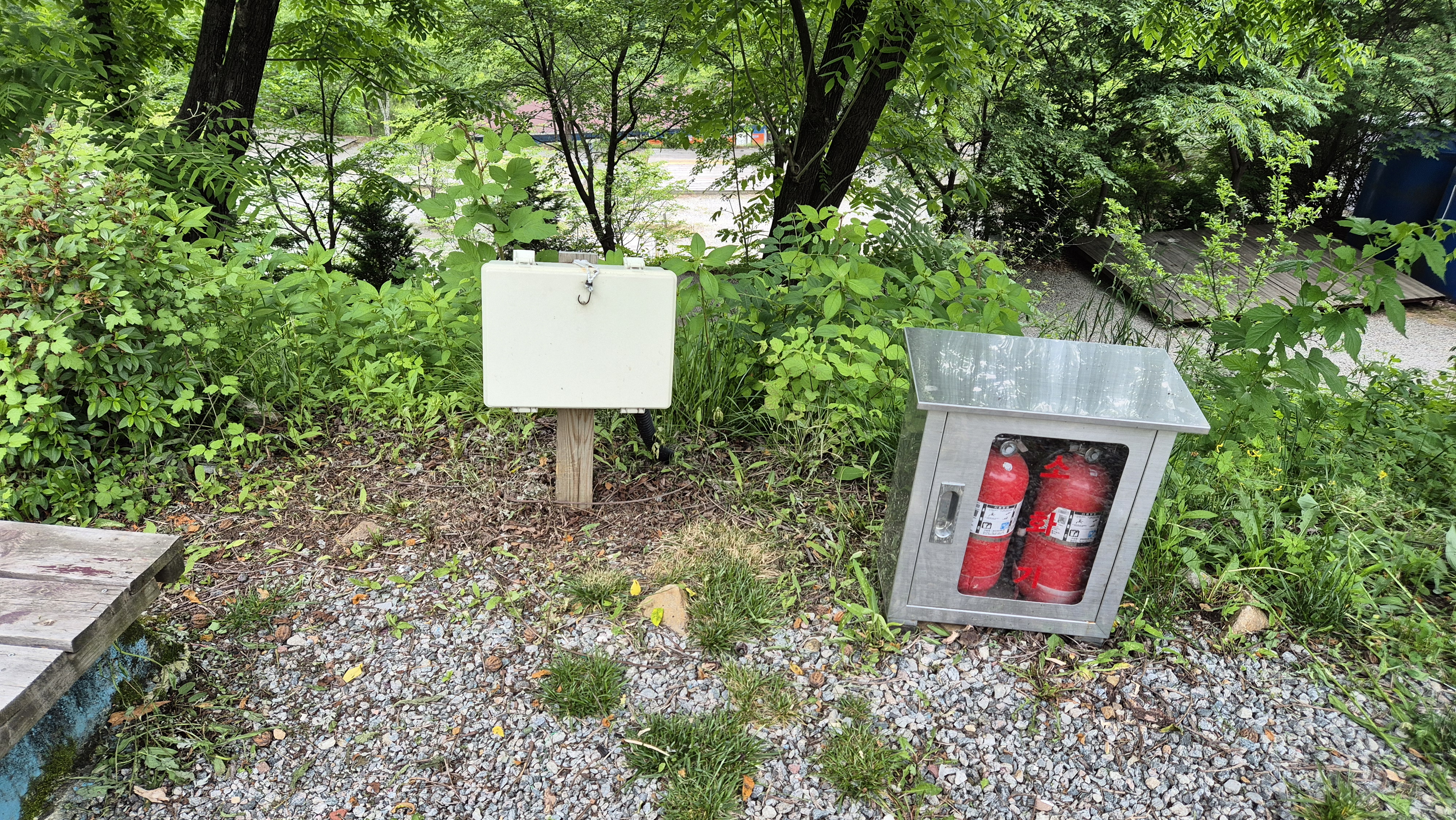 5-2번 사이트 오른쪽에 배전함과 소화기가 있습니다