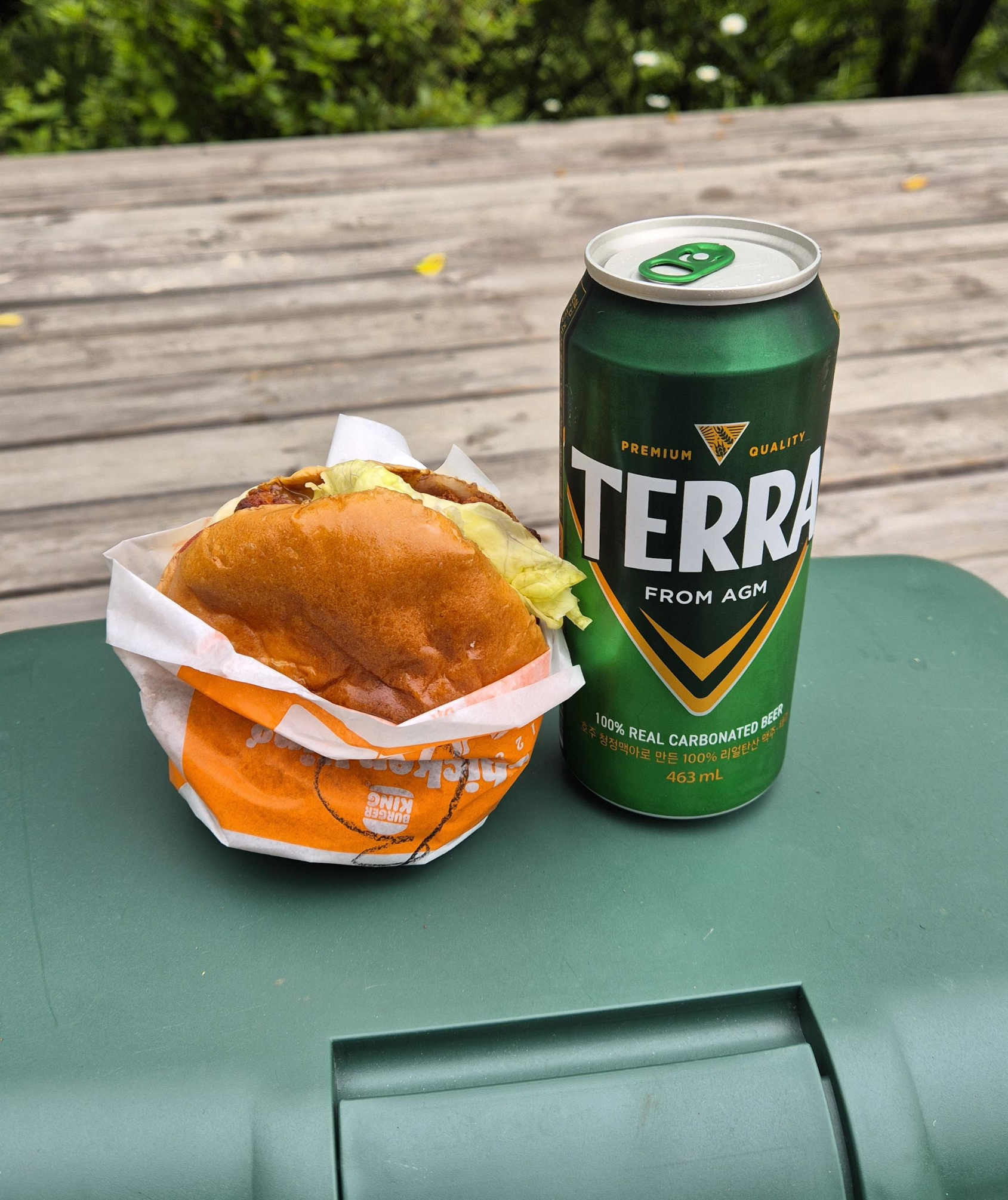 우선 점심을 먹지않고 왔기 때문에 맥주에 햄버거 하나 때려줍니다 :)