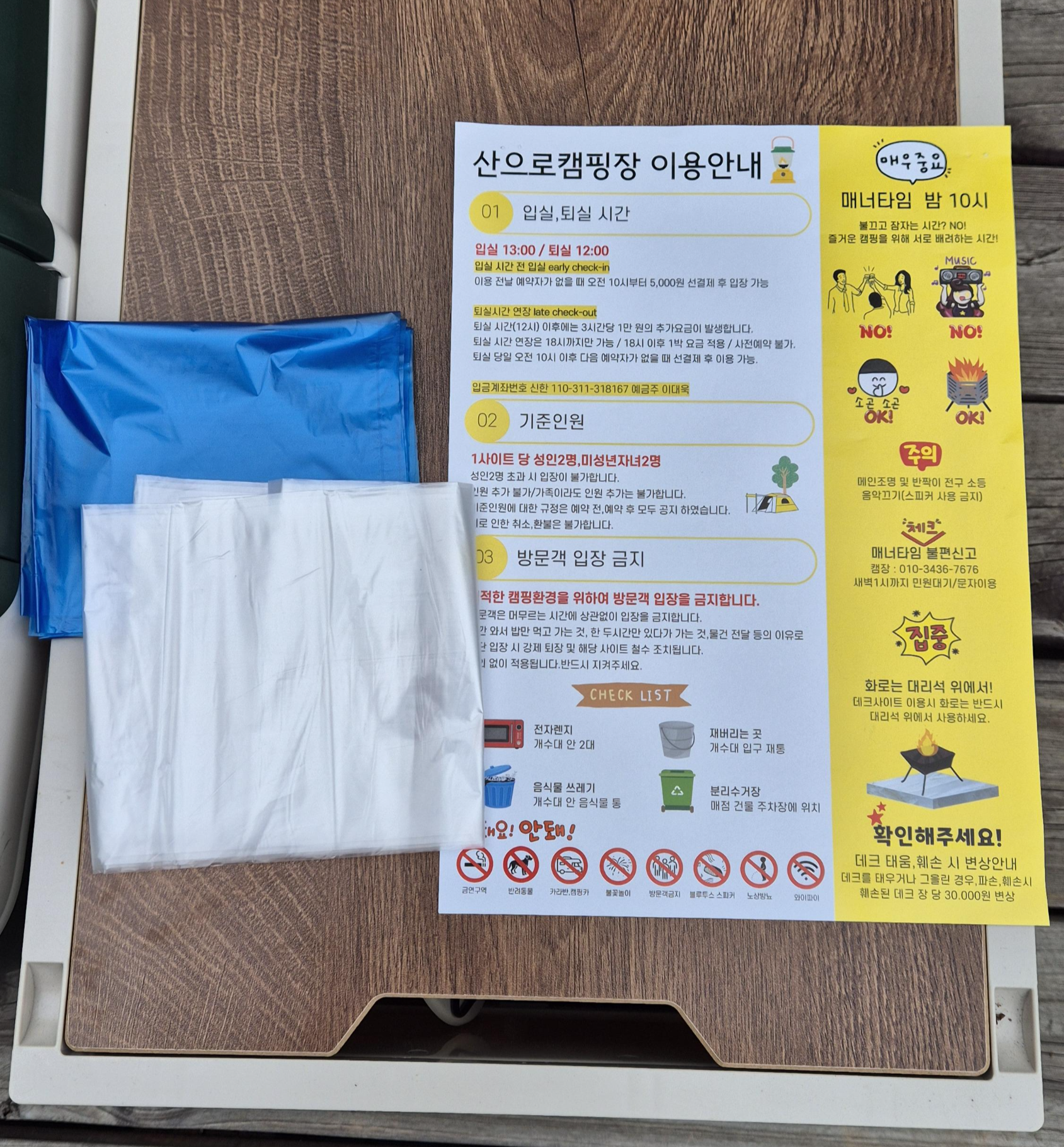 쓰레기봉투랑 기본적인 이용안내가 써져있는 종이를 줍니다