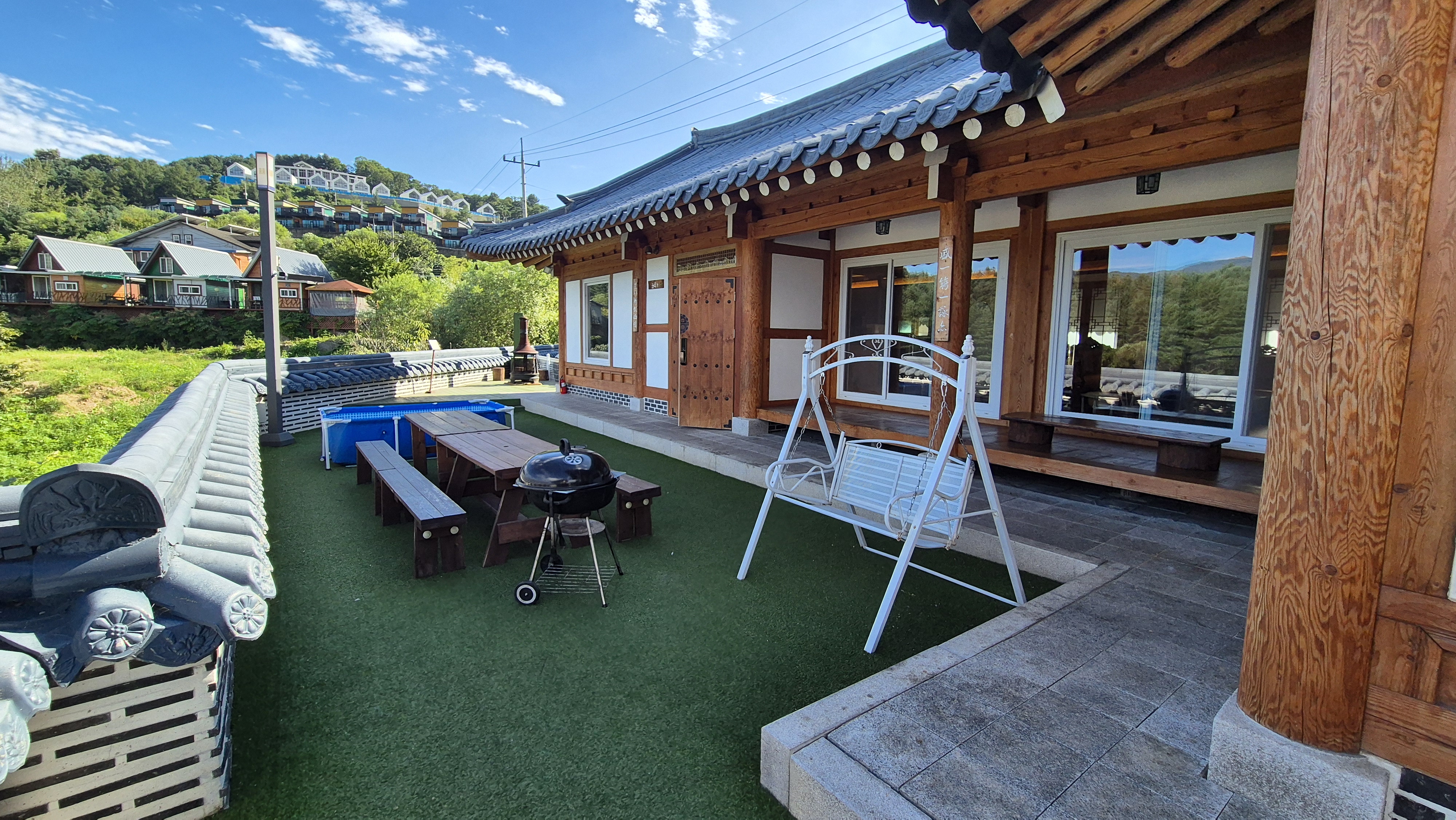 단점으로는 저녁에 마당에서 바베큐를 하는데 한옥4는 위쪽에 조명이 있는 구조가 아니라