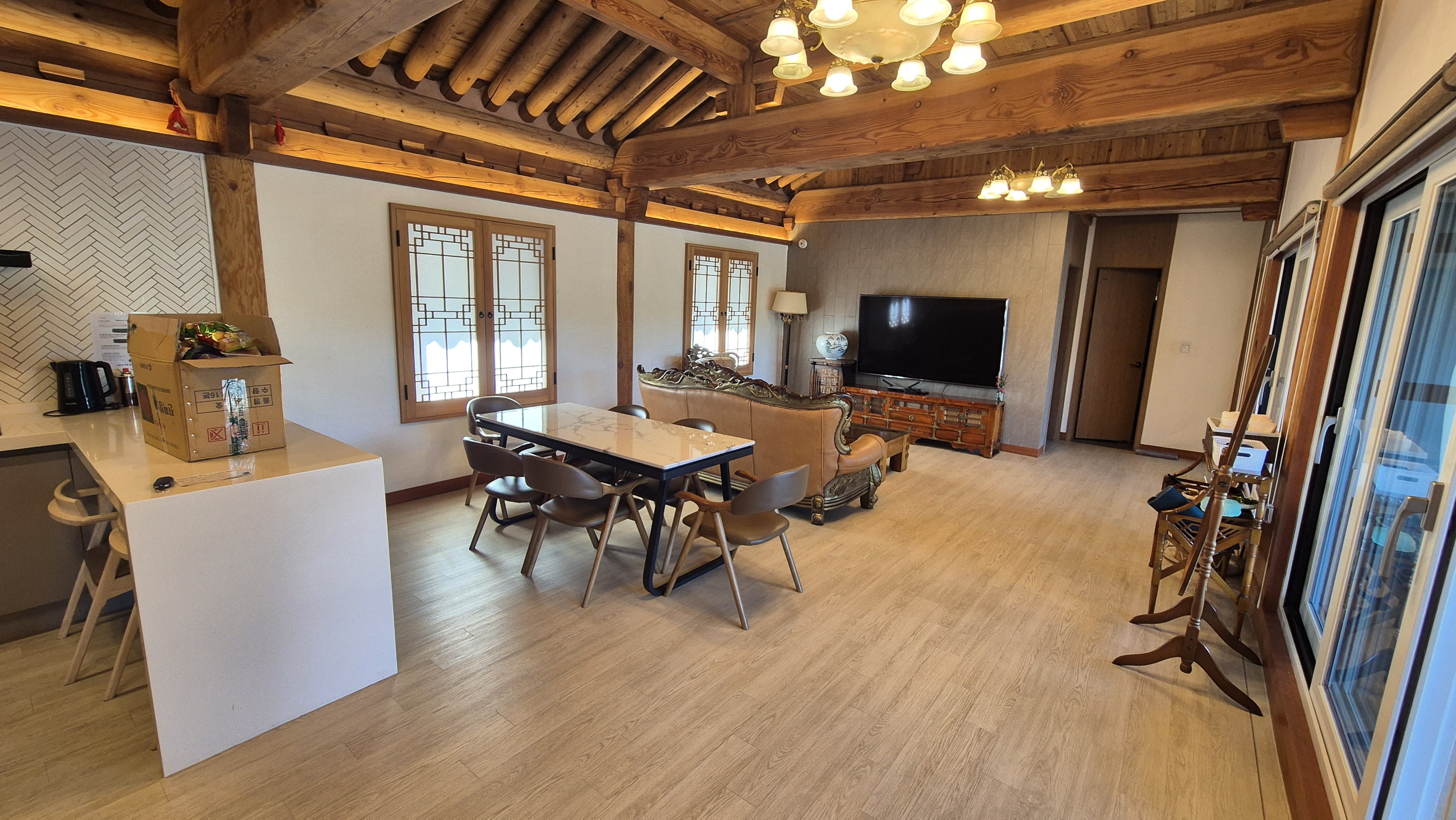 한옥펜션이지만 적절하게 현대식 인테리어와 어우러져 있는 느낌이였고