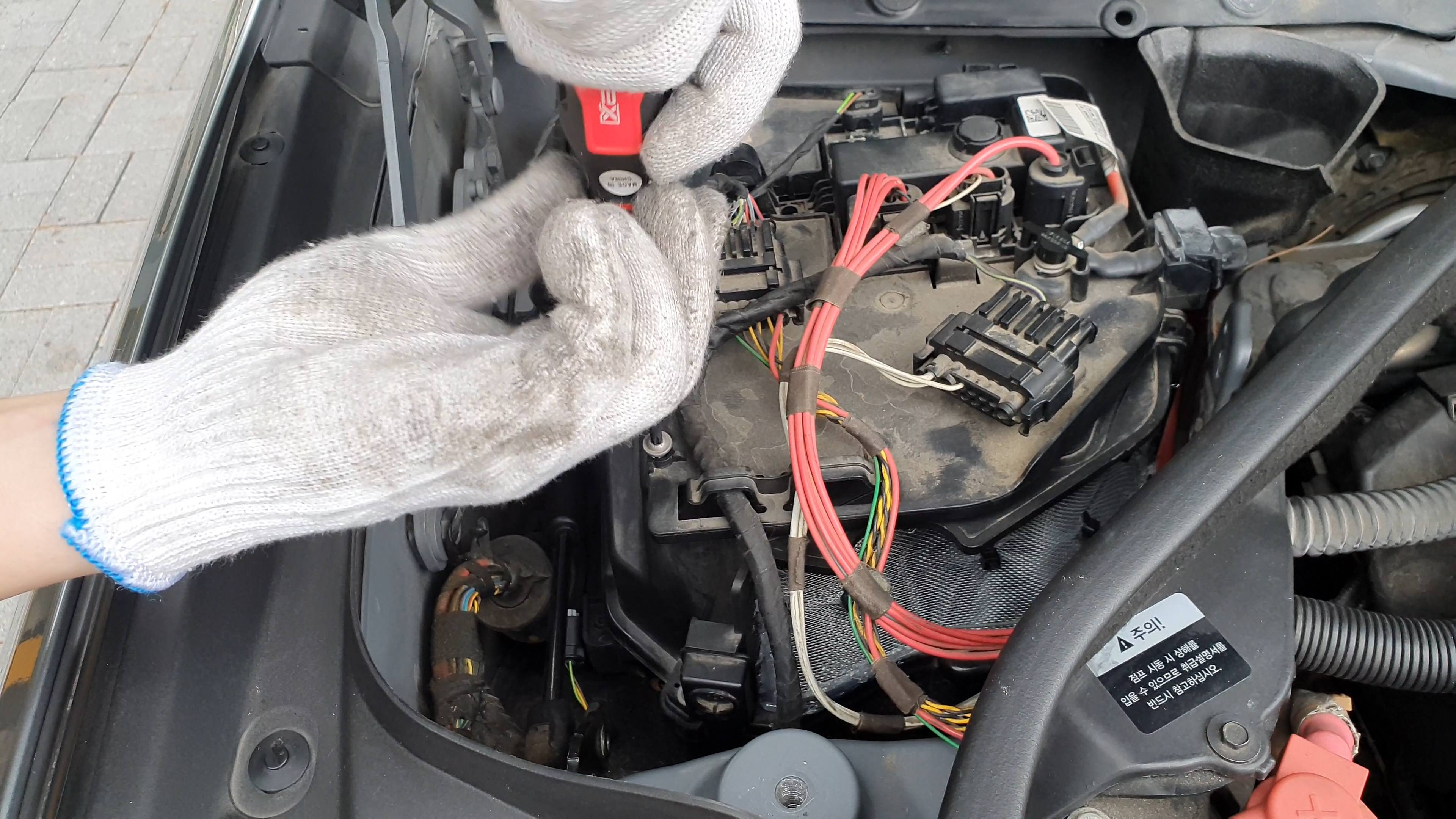 자 우선 차량의 본넷을 열고나면 조수석 쪽에 저렇게 3개의 키가 고정되어있는 플라스틱 부품이 있습니다