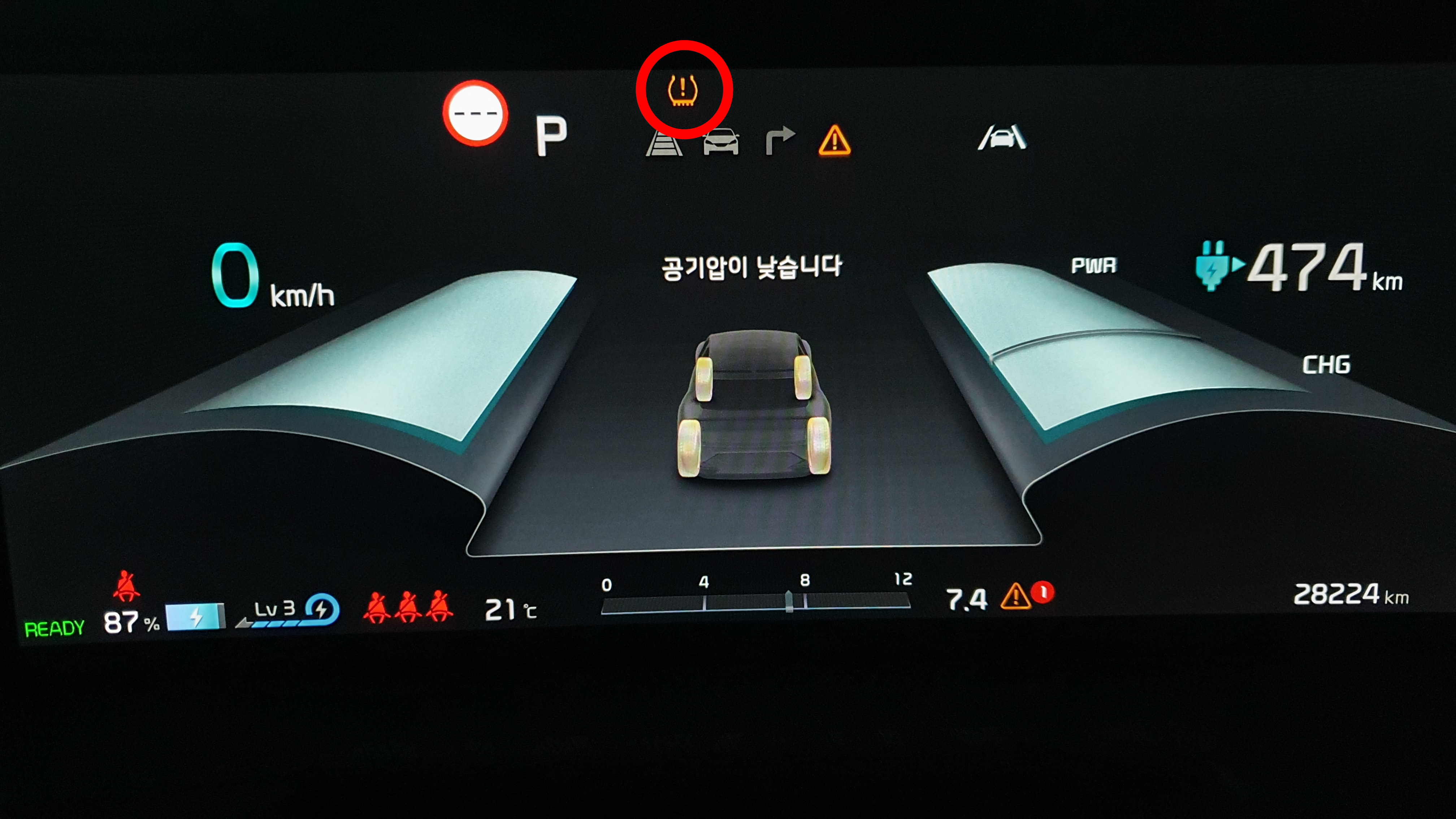 얼마전에 기온이 떨어지면서 이렇게 공기압이 낮습니다 라고 계기판에 뜨더라고요