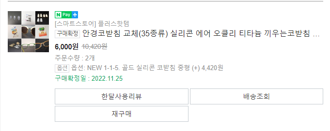 저는 제 안경코받침이랑 비슷한걸 골라서 주문하였습니다