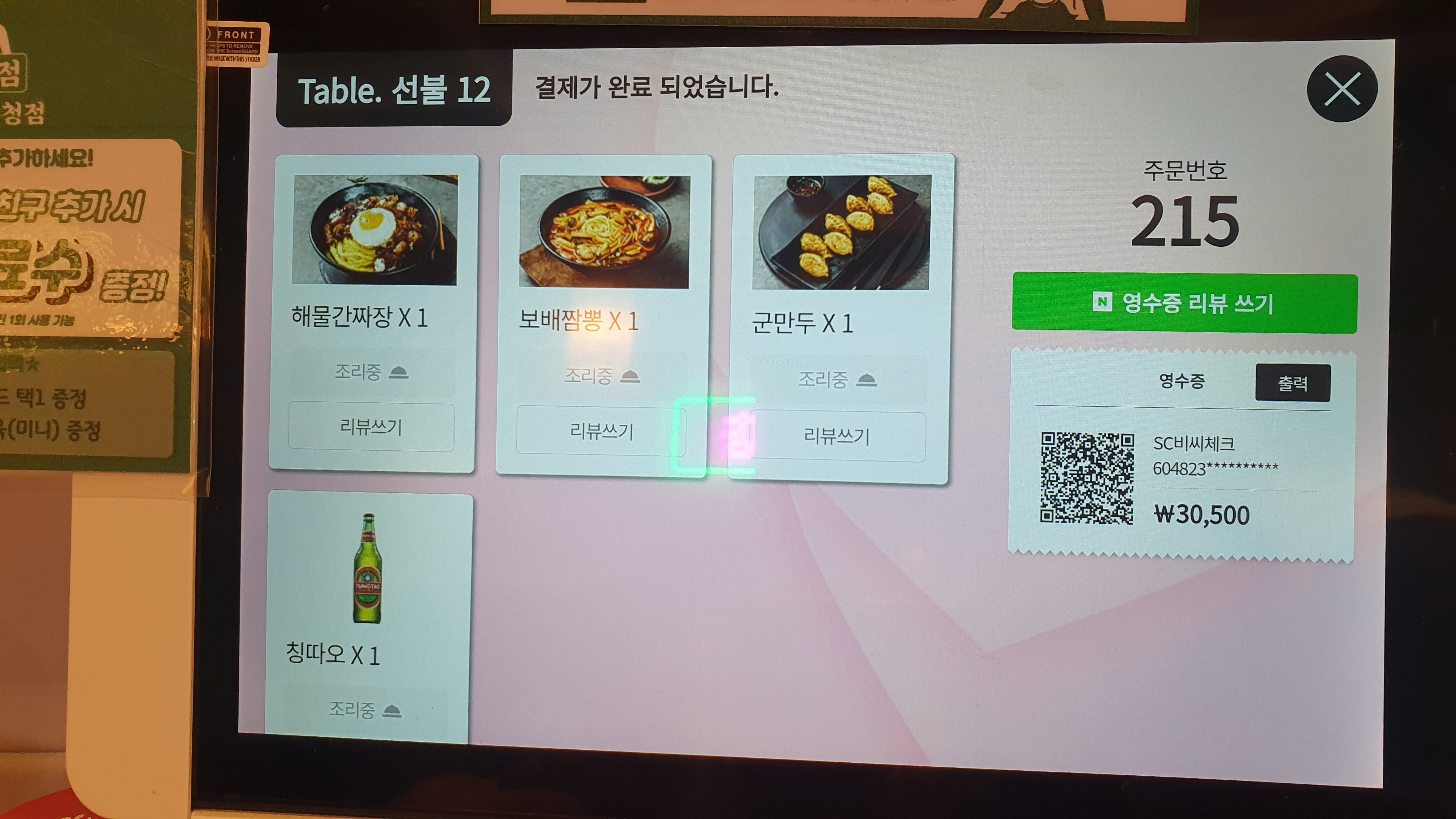먹고싶은걸 고르고 앉은 자리에서 결제까지하면 주방으로 오더가 들어가네요