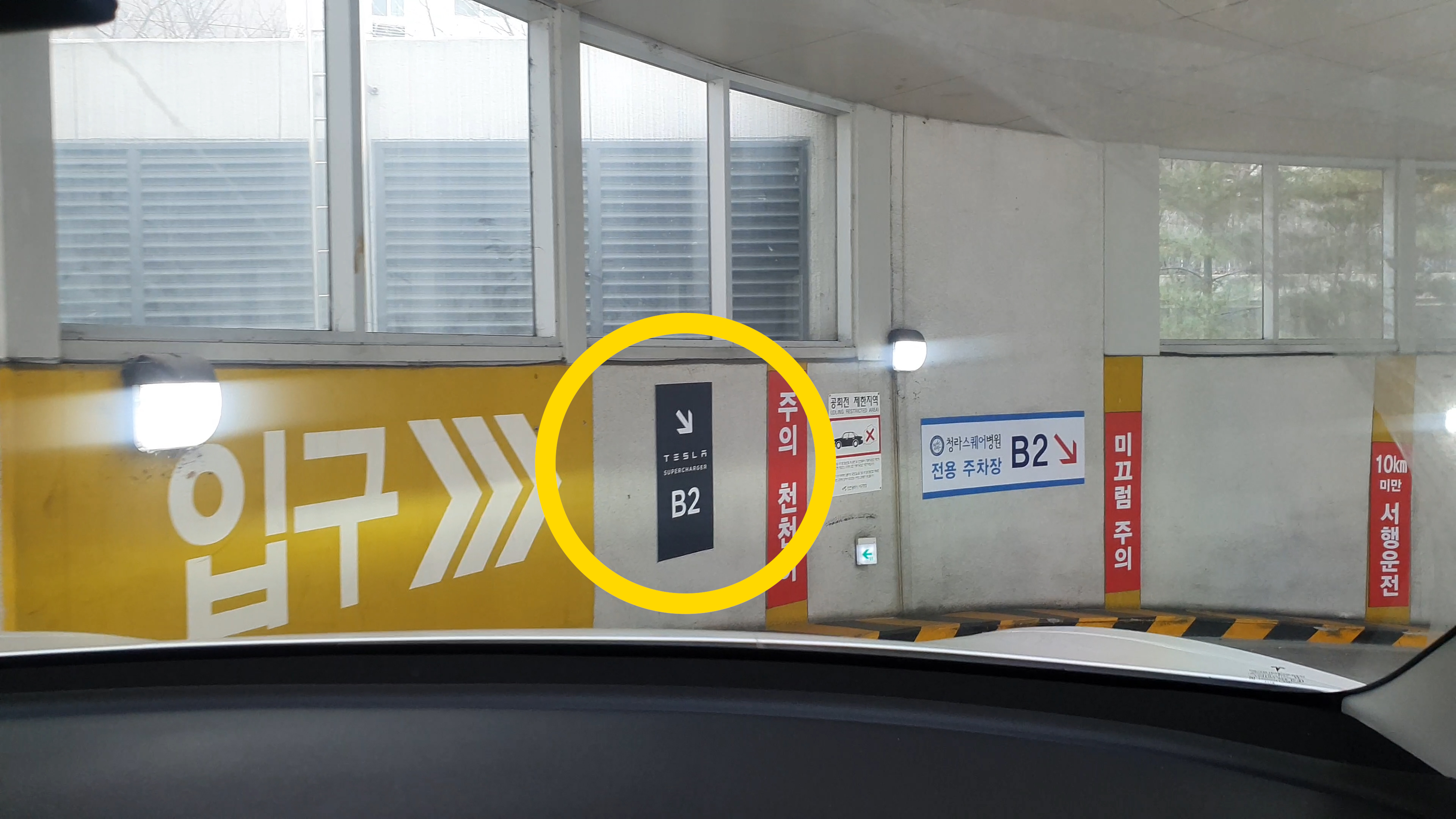 입구에서부터 테슬라 수퍼차저는 B2 라고 친절하게 써져있네요