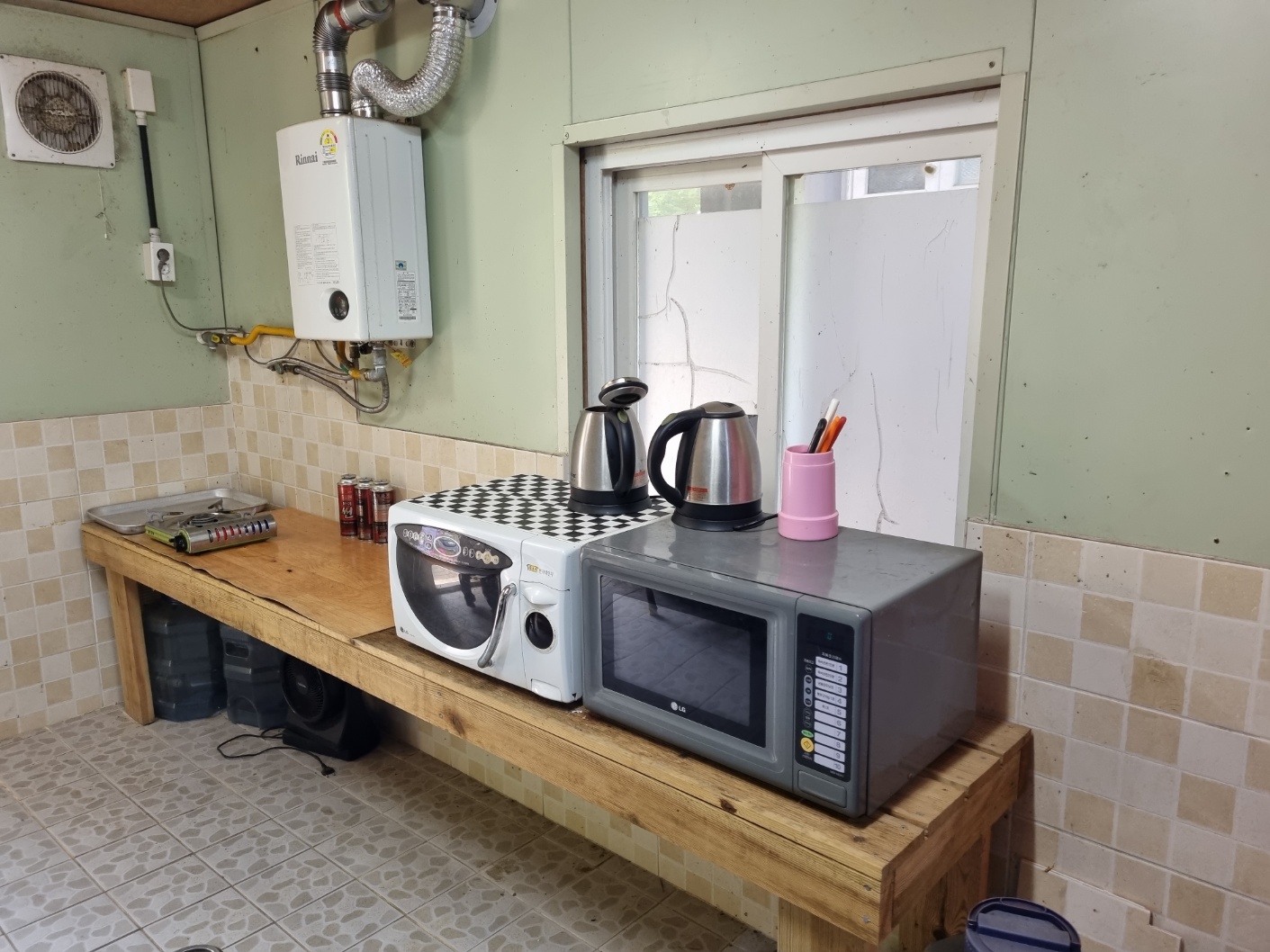 계수대에는 집기류나 냄비류가 여유분이 있어서 혹시 까먹고 안가져왔으면 쓸 수가 있었습니다