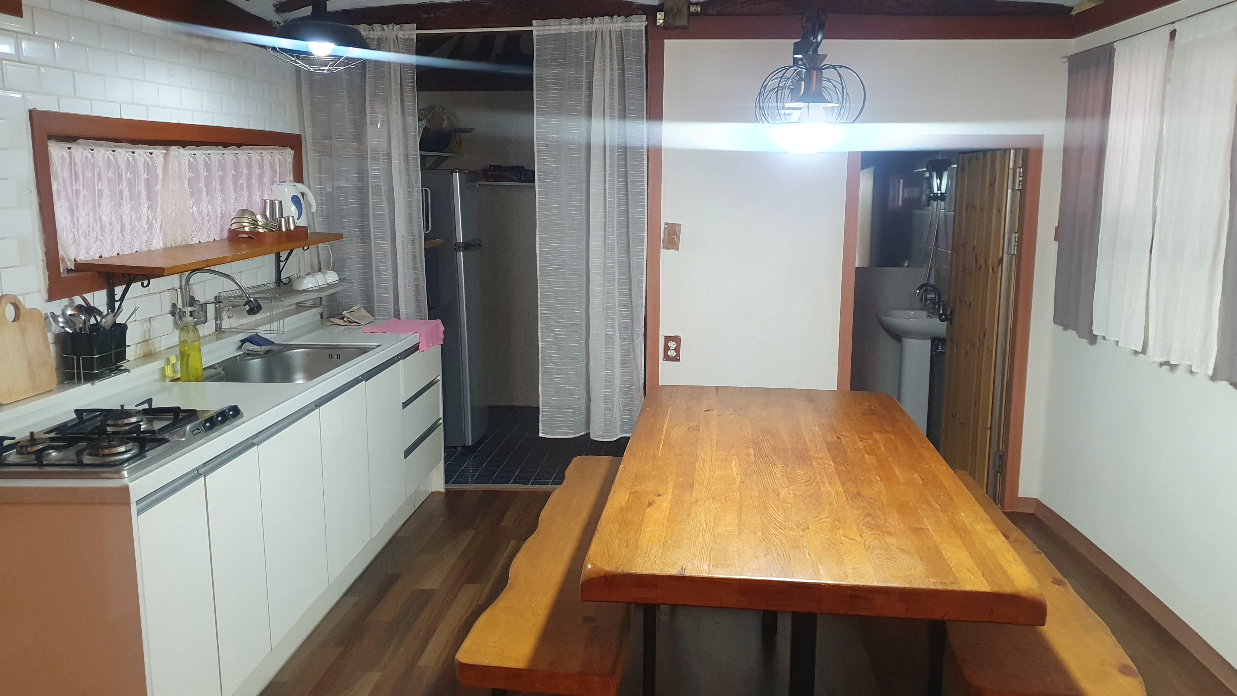 주방도 널찍하게 되어있고 테이블이 크게 되어있어