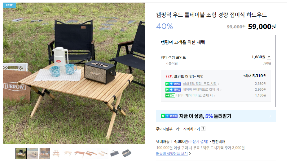 지금까지 내돈내산 캠핑덕 우드롤테이블 리뷰였습니다