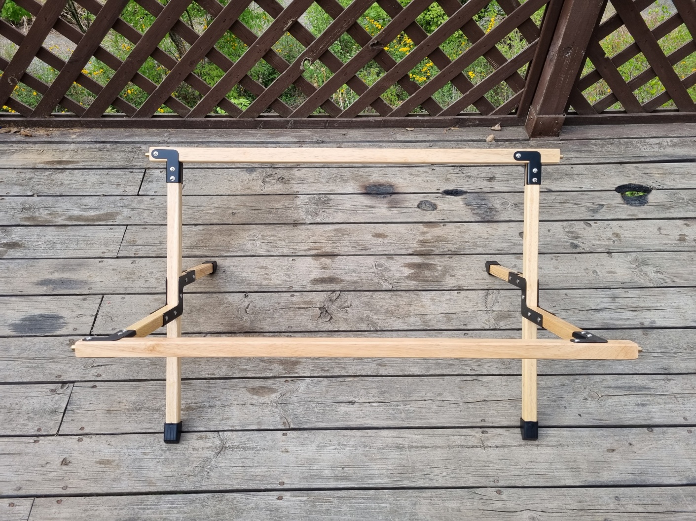 상판을 펼쳐서 다리쪽에 있는 체결부에 구멍을 맞춰서 체결해줍니다
