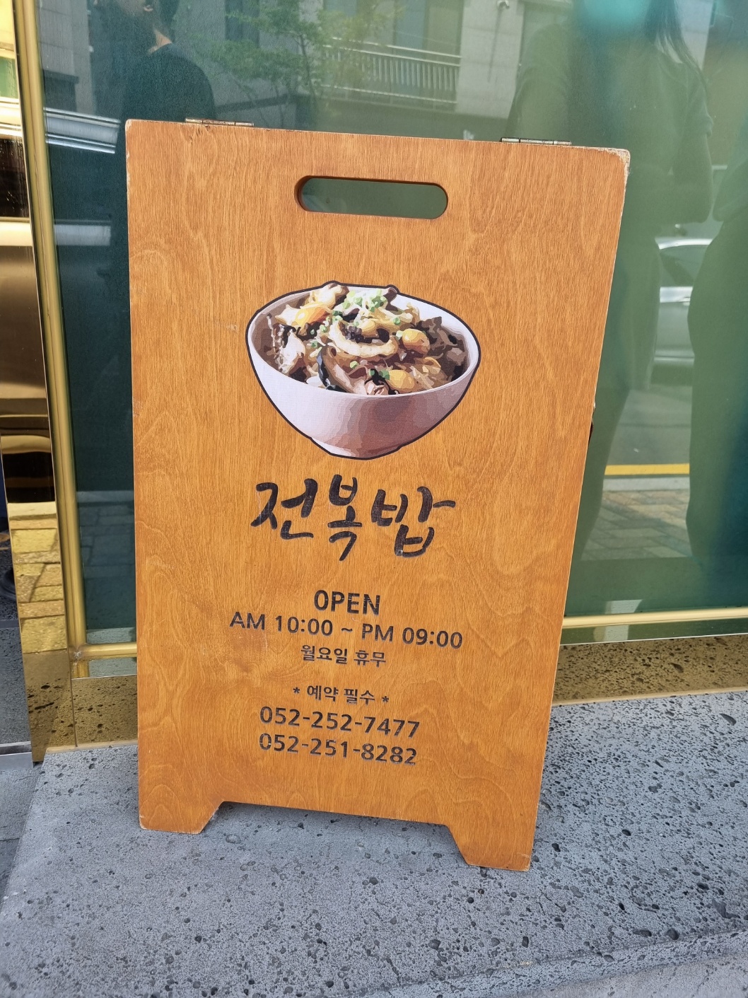 가게 외관은 이렇게 생겼구요 전복밥이 전문인 만큼 입간판에도 전복밥 그림이 있네요ㅎ
