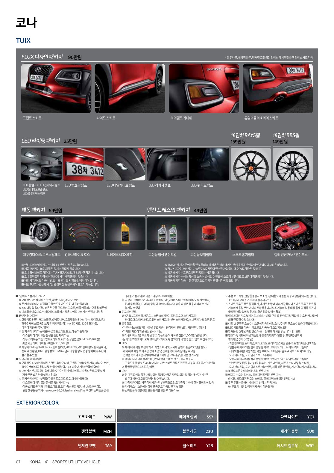 코나의 상세제원입니다