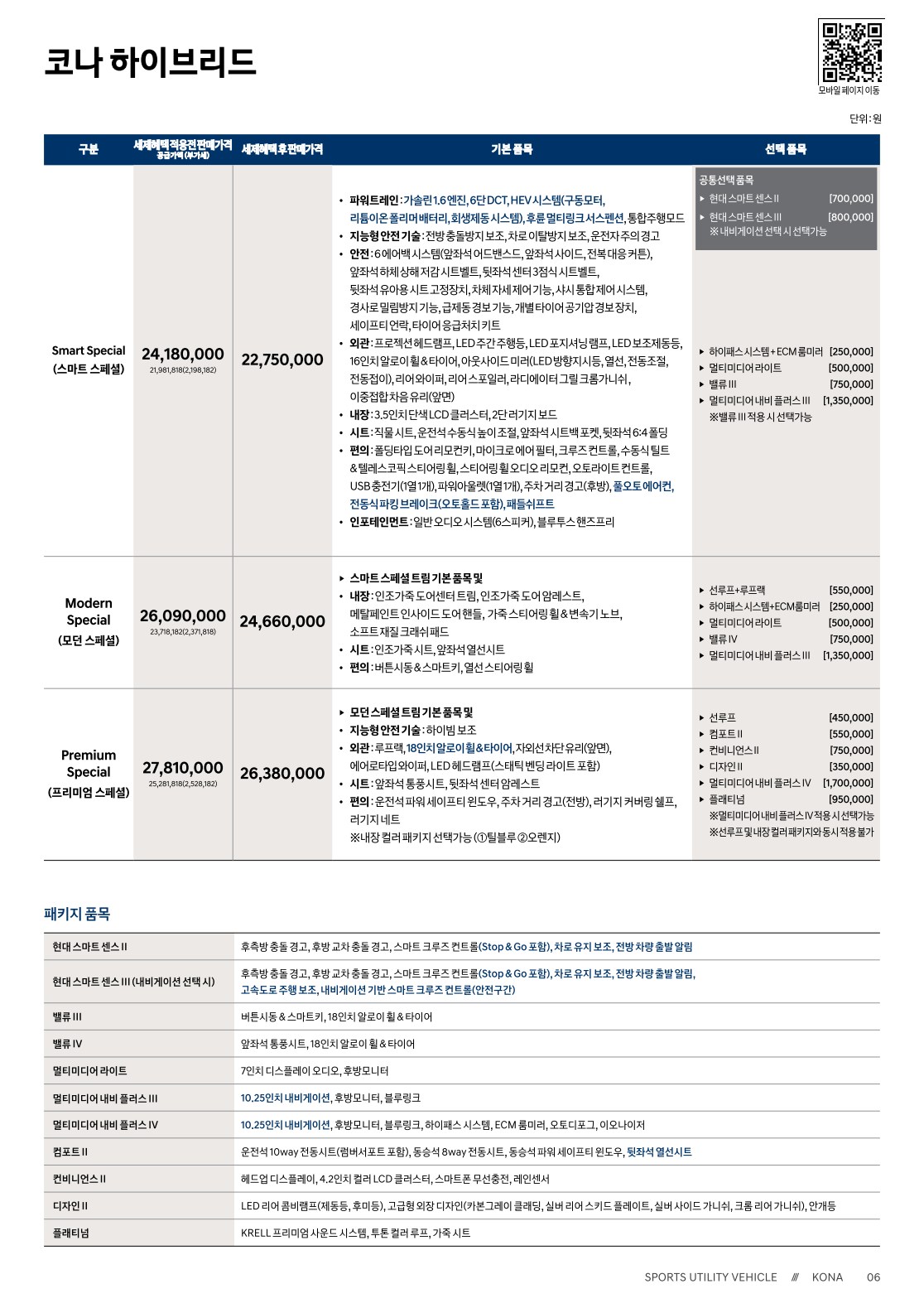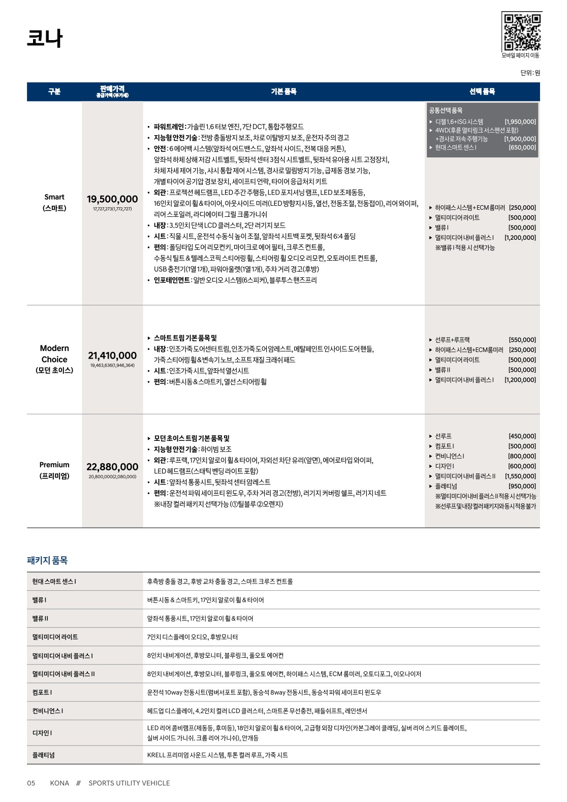 2020 코나 가격표 옵션표